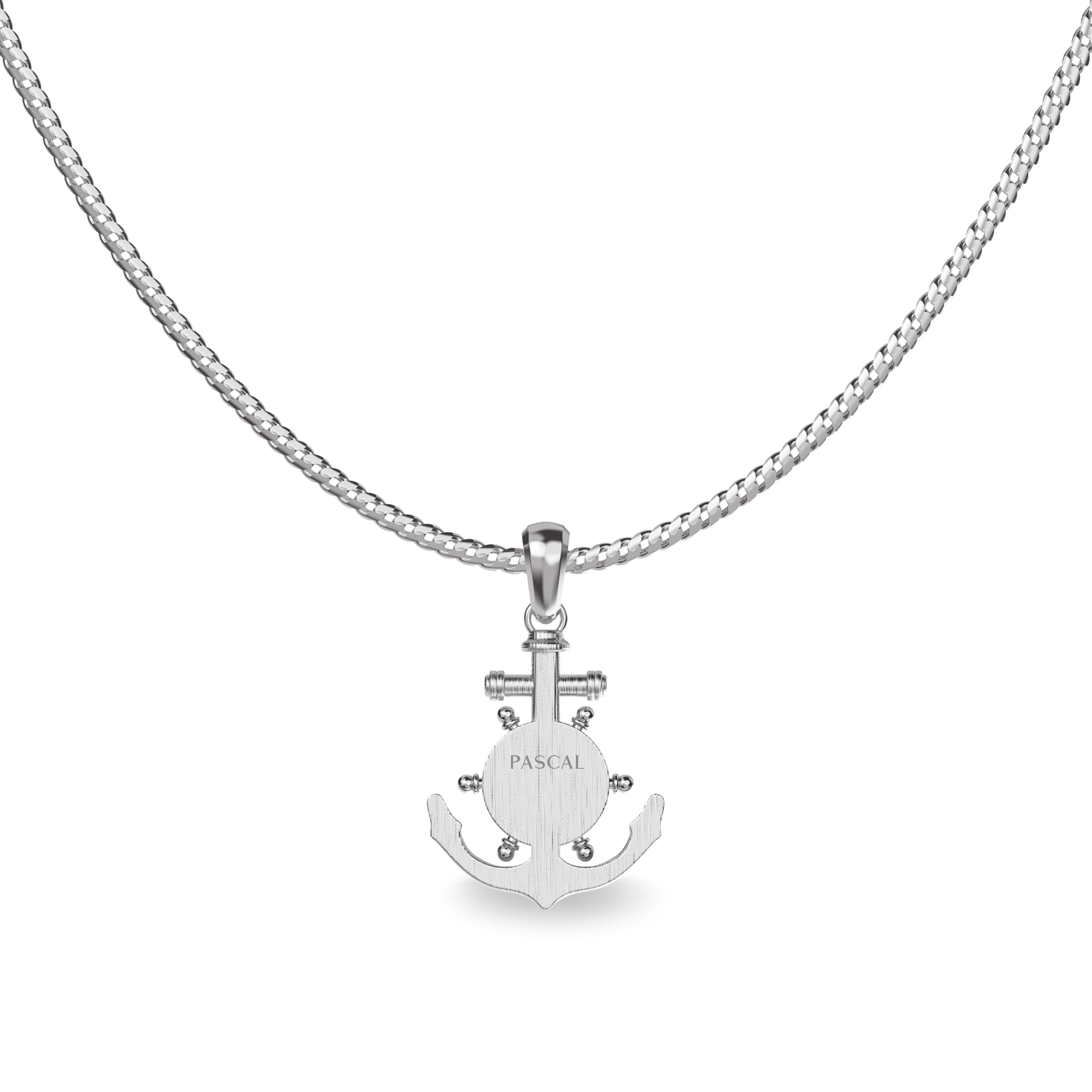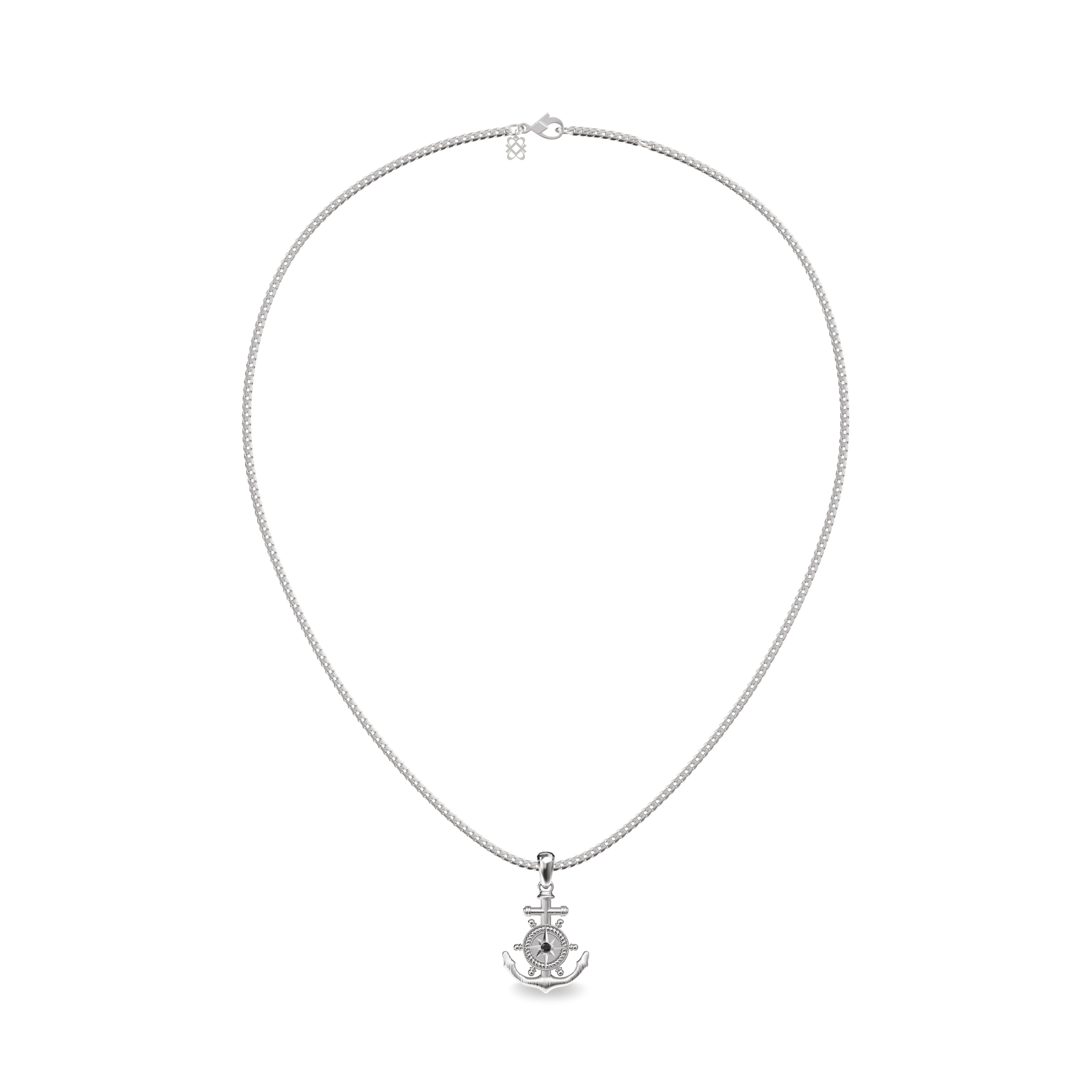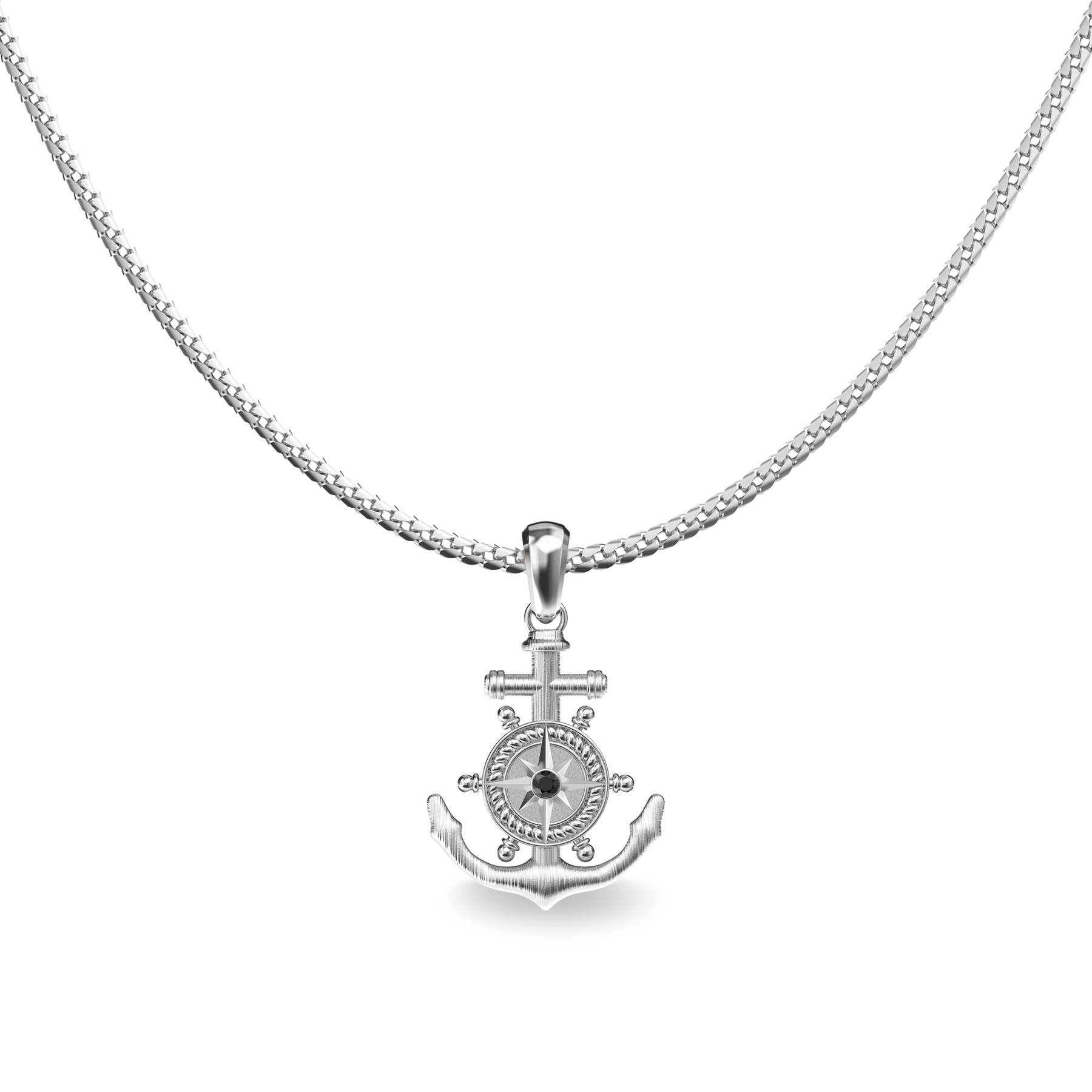 Featuring an anchor as its primary form, this necklace blends nautical elements with clean, geometric structure in a compact yet visually grounded pendant. The anchor silhouette is clearly defined and well proportioned, with a compass-inspired circular detail integrated at the center, adding depth and a balanced focal point.
