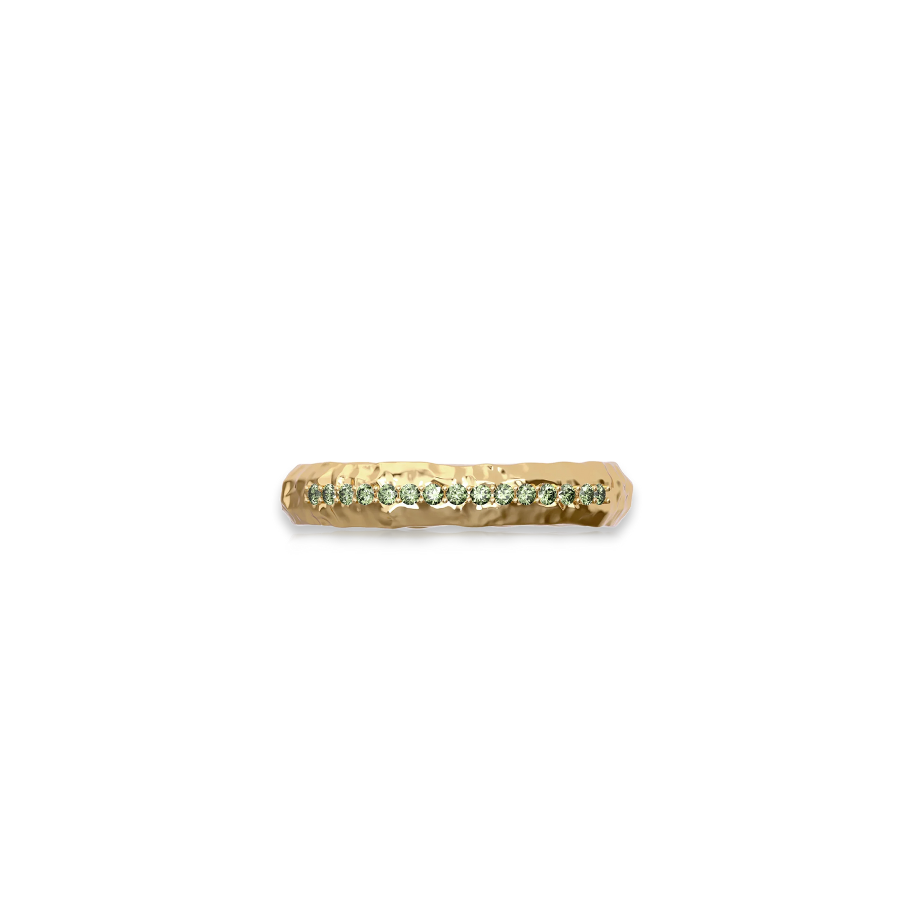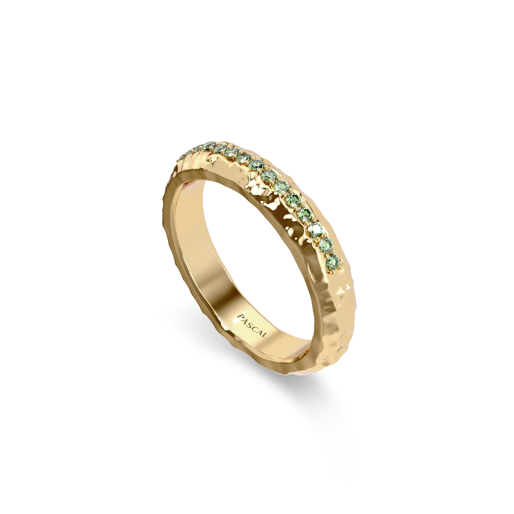 Der Verlobungsring verfügt über 15 sorgfältig ausgewählte, im Labor gezüchtete Diamanten mit einem Gesamtgewicht von 0,18 Karat. Erhältlich in grünen oder weißen Diamanten verkörpern diese Stücke unser Engagement für nachhaltigen Luxus und bewahren dabei eine unverwechselbare handgefertigte Ästhetik.