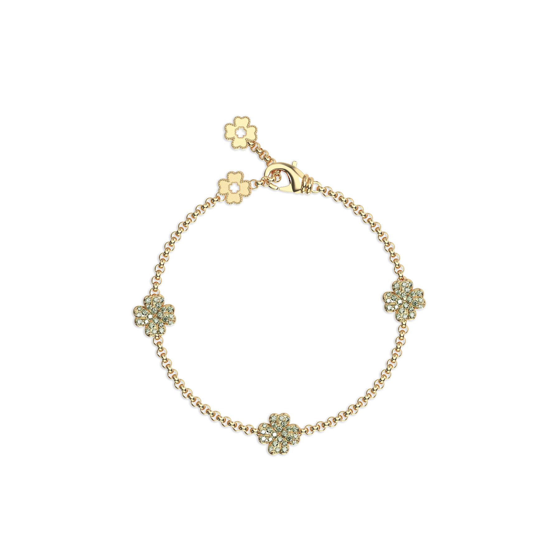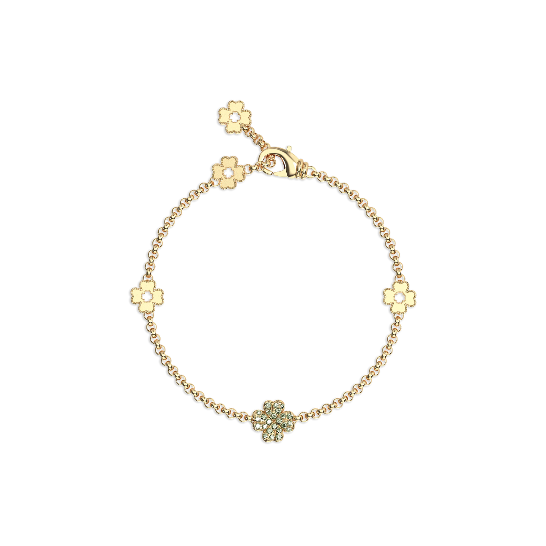 'Glücksklee' 5 Motive Armband, grünes Diamant-Pavé