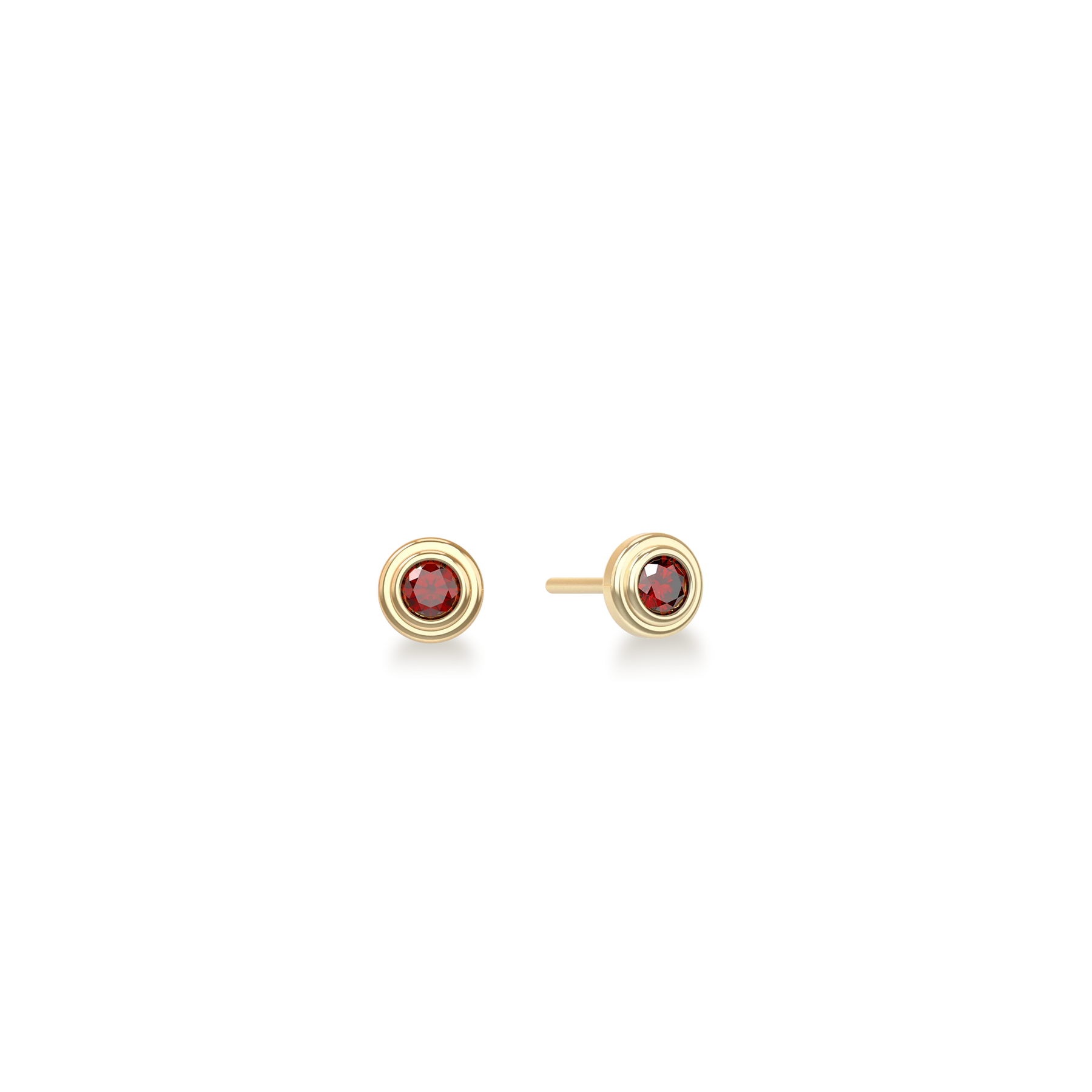 Dieser kleine und exquisite Ohrstecker aus Gold verwendet eine mehrschichtige Fassung, um einen bezaubernden, 3 mm großen, im Labor gezüchteten Rubin einzuschließen und stellt eine einfache, klassische und elegante optische Verzierung dar.
