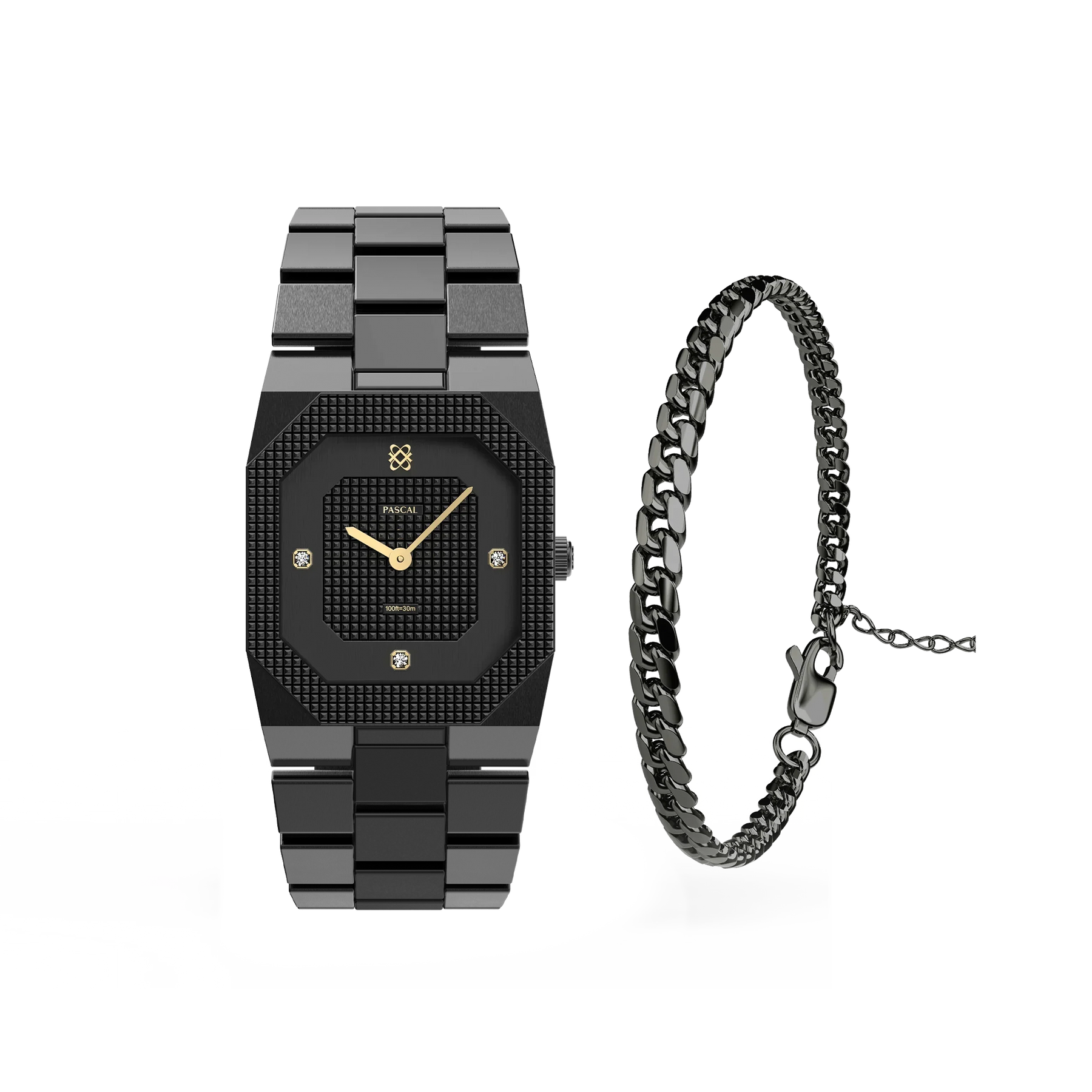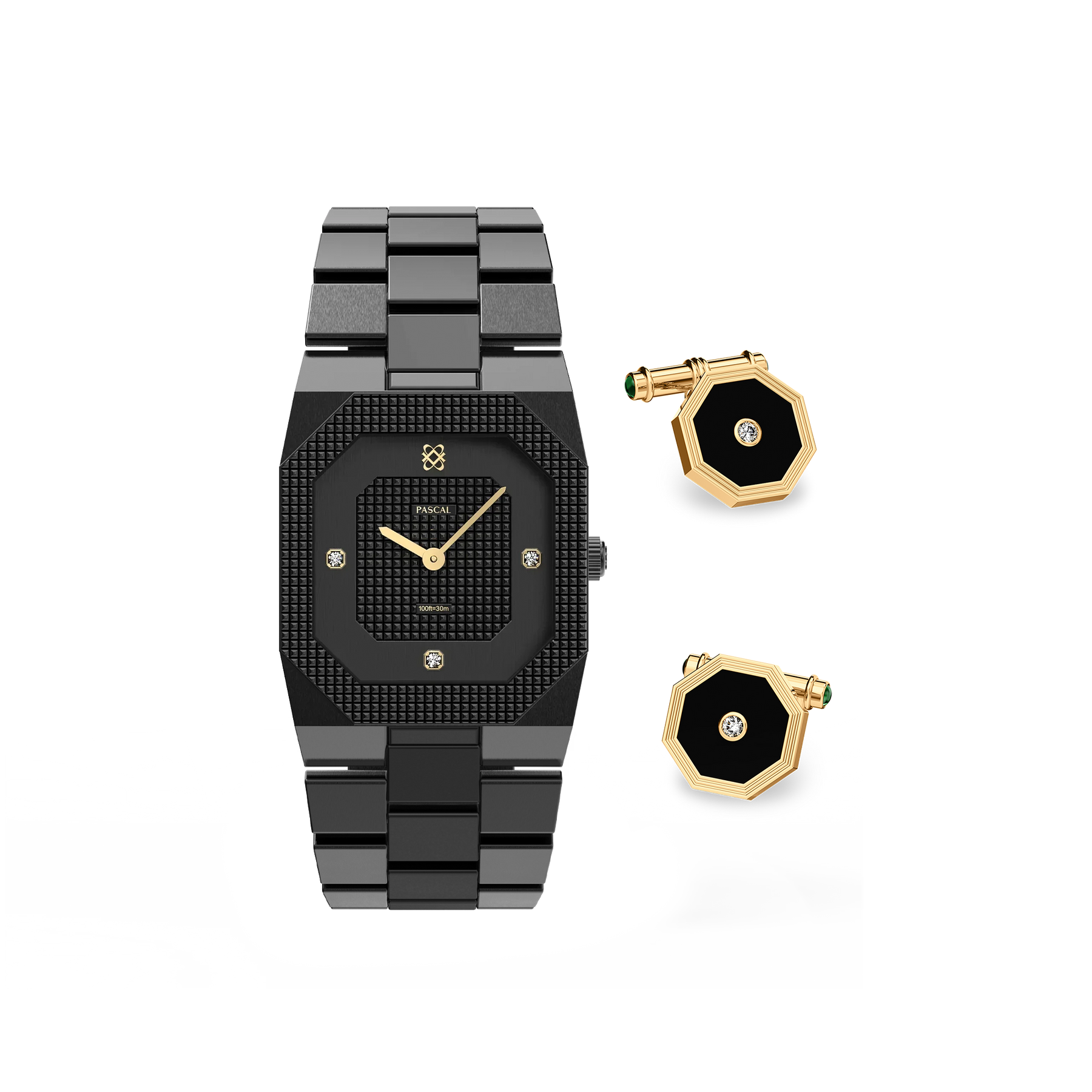 Vollständig aus Edelstahl gefertigt, verfügt diese Uhr über eine achteckige Lünette mit filigranen Strukturen, ergänzt durch abwechselnd polierte und gebürstete Oberflächen am Metallarmband. Inspiriert von Vintage-Ästhetik erinnert das achteckige Gehäusedesign an zeitlose Eleganz. Das Zifferblatt spiegelt die Textur der Lünette wider, mit im Labor gezüchteten Diamanten bei 3, 6 und 9 Uhr, die eine harmonische Verbindung von Vergangenheit und Gegenwart symbolisieren.