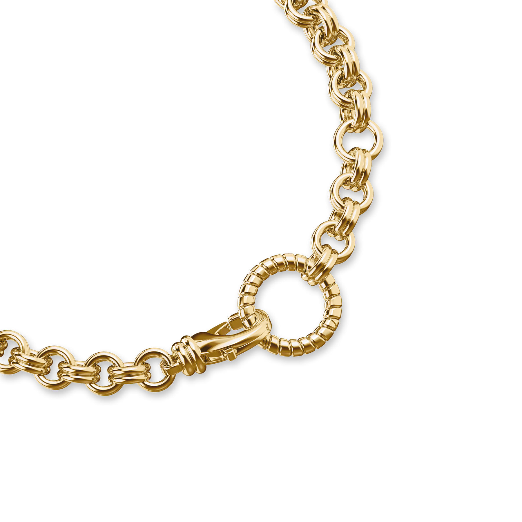 Mit einem kühnen Volumengefühl wird diese Rolo-Kette durch einen raffinierten Verschluss aufgewertet, der ein Gleichgewicht zwischen Stärke und Eleganz schafft. Entworfen, um für sich allein zu stehen oder mit Anhängern kombiniert zu werden, bietet sie endlose Stylingmöglichkeiten und bleibt dabei mühelos klassisch und schick.