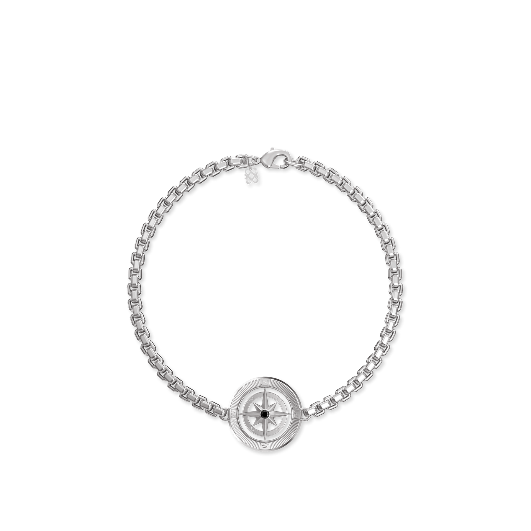 Esta pulsera está elaborada con una cadena sólida y acentuada por un refinado colgante de brújula. La estrella de ocho puntas está detalladamente trabajada, con un brillante diamante cultivado en laboratorio colocado en su centro, brillando como una luz guía. El anillo exterior está rodeado de delicadas texturas, añadiendo profundidad y dimensión para mostrar una artesanía exquisita.