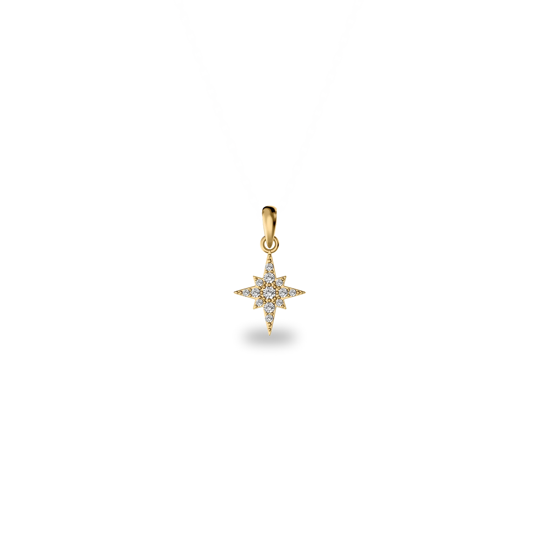 Colgante de diamante Estrella Brillante en base de plata de ley 925 y con baño de lujo, engastado con 13 diamantes cultivados en laboratorio de corte brillante.