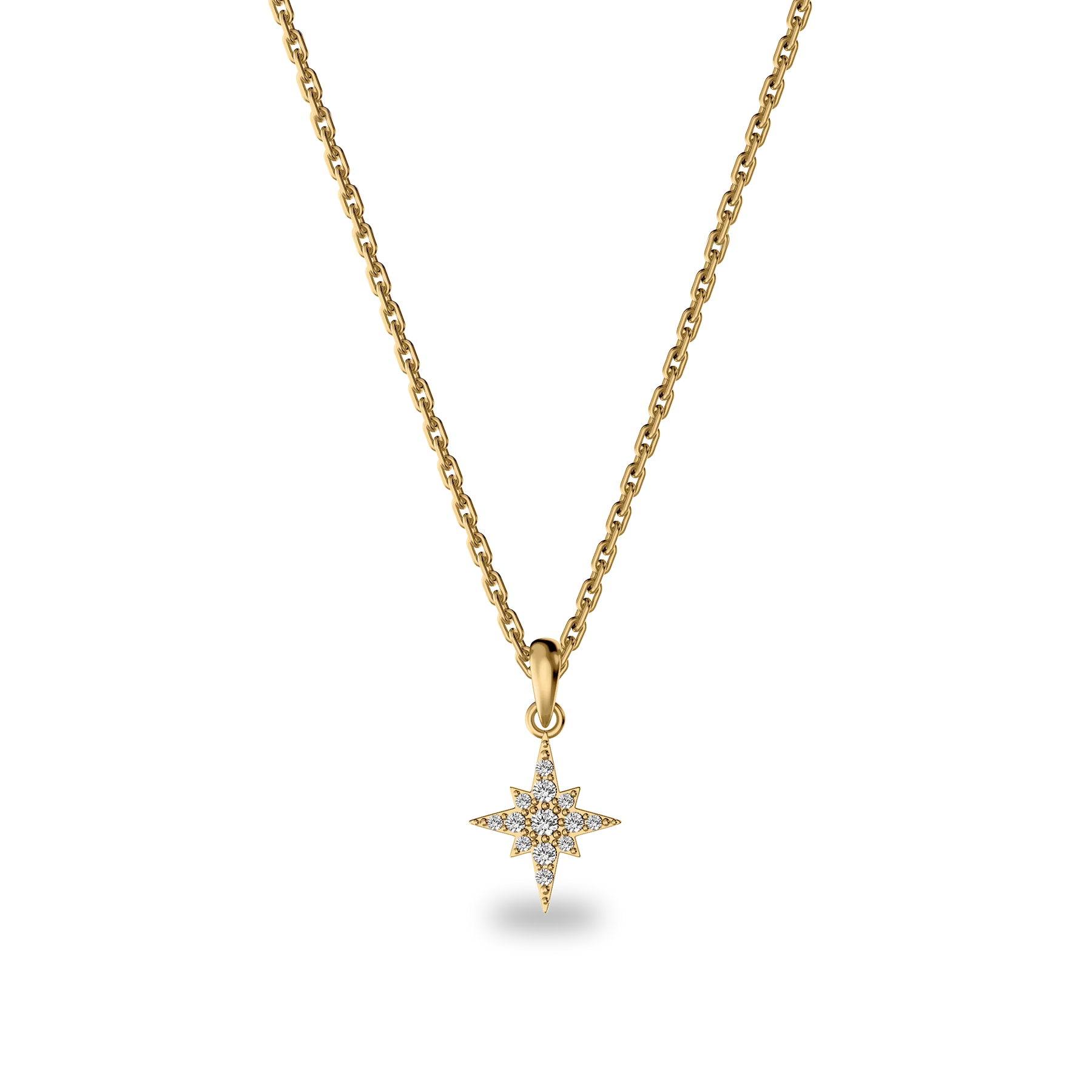 Este exquisito colgante presenta un elemento de estrella de ocho puntas y está engastado con diamantes para un brillo deslumbrante. Tiene una estética ligera y elegante.