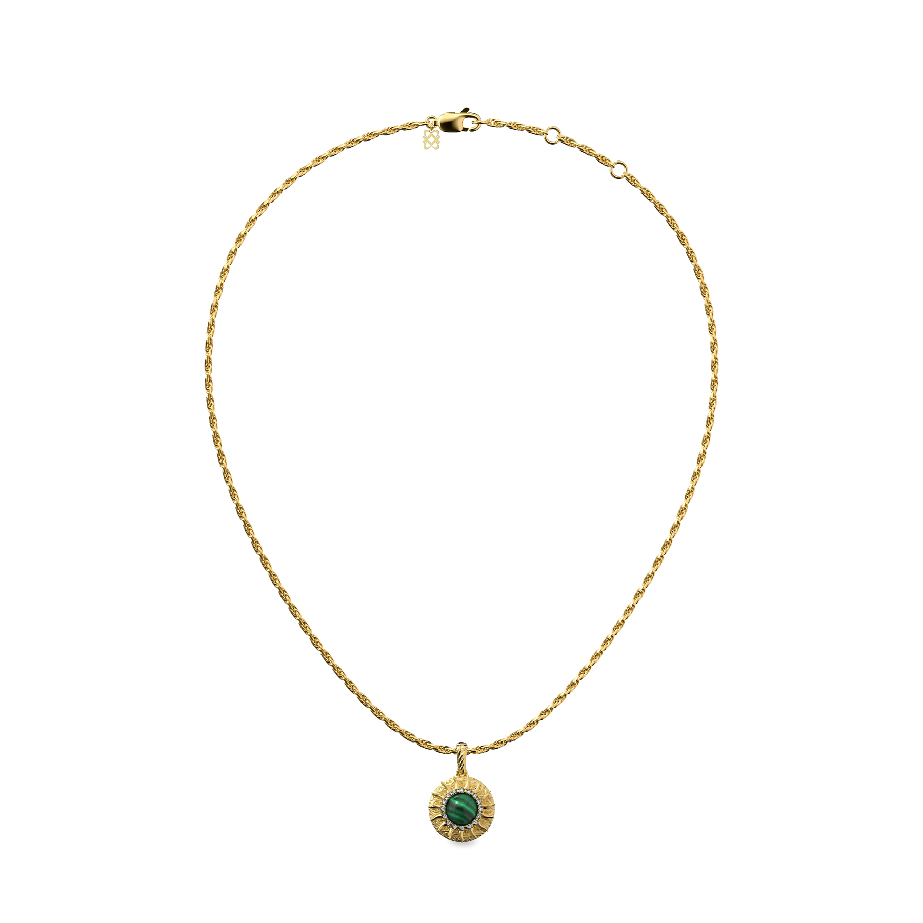 El Sol encarna vitalidad, alegría y la chispa creativa que renueva el alma. Brilla como un símbolo de claridad y optimismo, recordándote avanzar con un propósito radiante. Ofrecido en diseños tanto de pulsera como de colgante, la pieza puede sintonizarse con tu ritmo interior mediante la elección de la piedra preciosa: la Malaquita fomenta la transformación y el flujo emocional; el Ojo de Tigre fortalece la voluntad y la autoconfianza; la Obsidiana ancla tu energía, restaurando la estabilidad y la calma. Rodeada de brillantes diamantes cultivados en laboratorio, cada piedra abovedada brilla como la luz del sol en movimiento, amplificando tu fuerza vital con gracia luminosa.