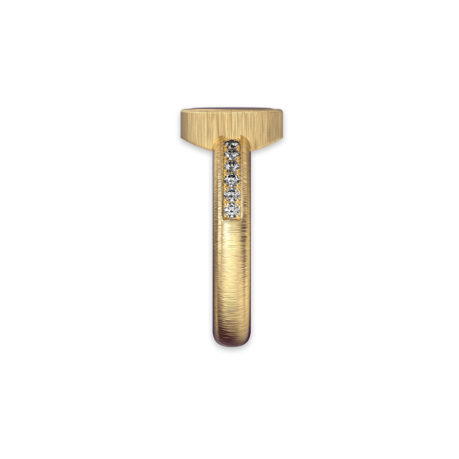 La banda presenta un diseño minimalista, con una fila de diamantes cultivados en laboratorio colocados a lo largo del brazo. Su brillo radiante contrasta con la textura envejecida de la moneda, logrando un equilibrio entre la dignidad clásica y la sofisticación contemporánea.
