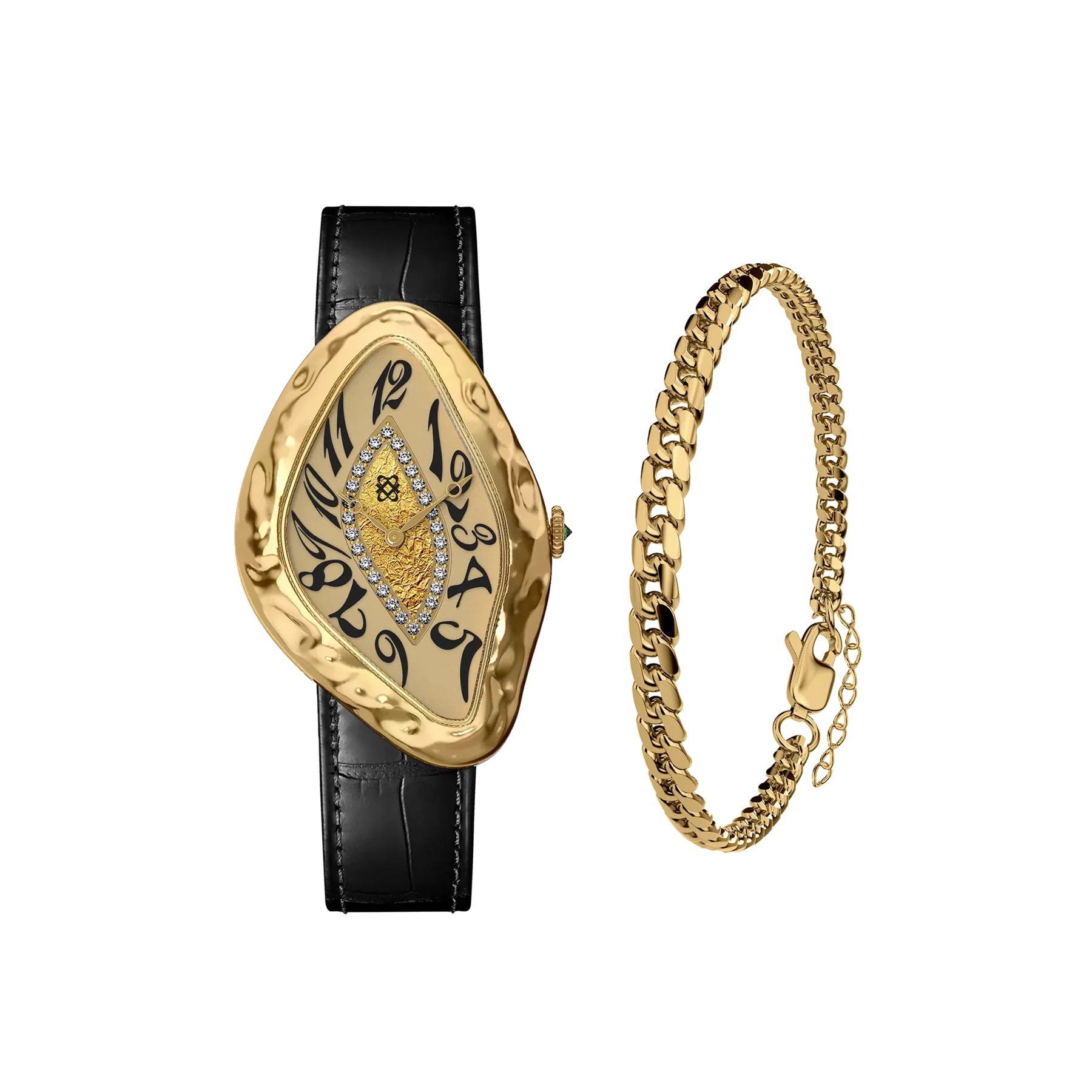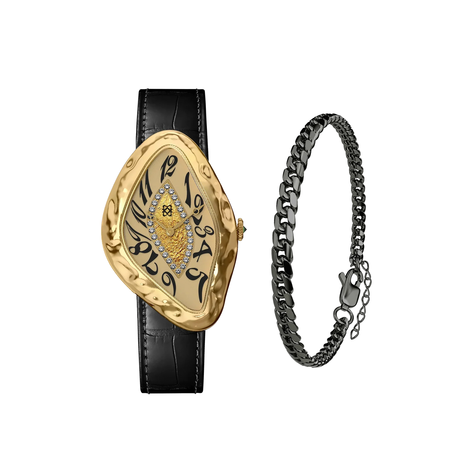 Presentamos nuestro Reloj Paradoxe Diamond: una pieza que desafía la convención y captura la esencia del tiempo fluido. Este extraordinario reloj presenta una caja inspirada en el movimiento fluido de los líquidos, que recuerda a una grieta temporal. Así como un reloj registra el tiempo, también preserva los momentos preciosos de la vida.