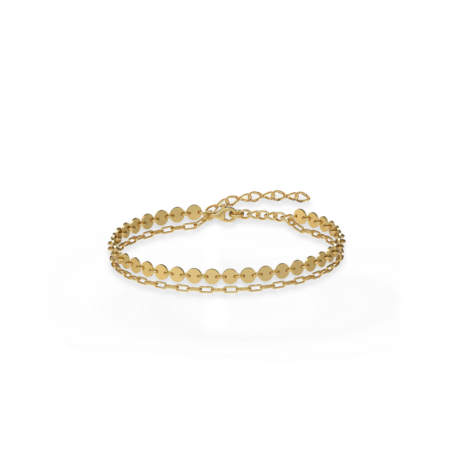 Esta pulsera de doble cadena es perfecta para usar sola o apilada en capas.