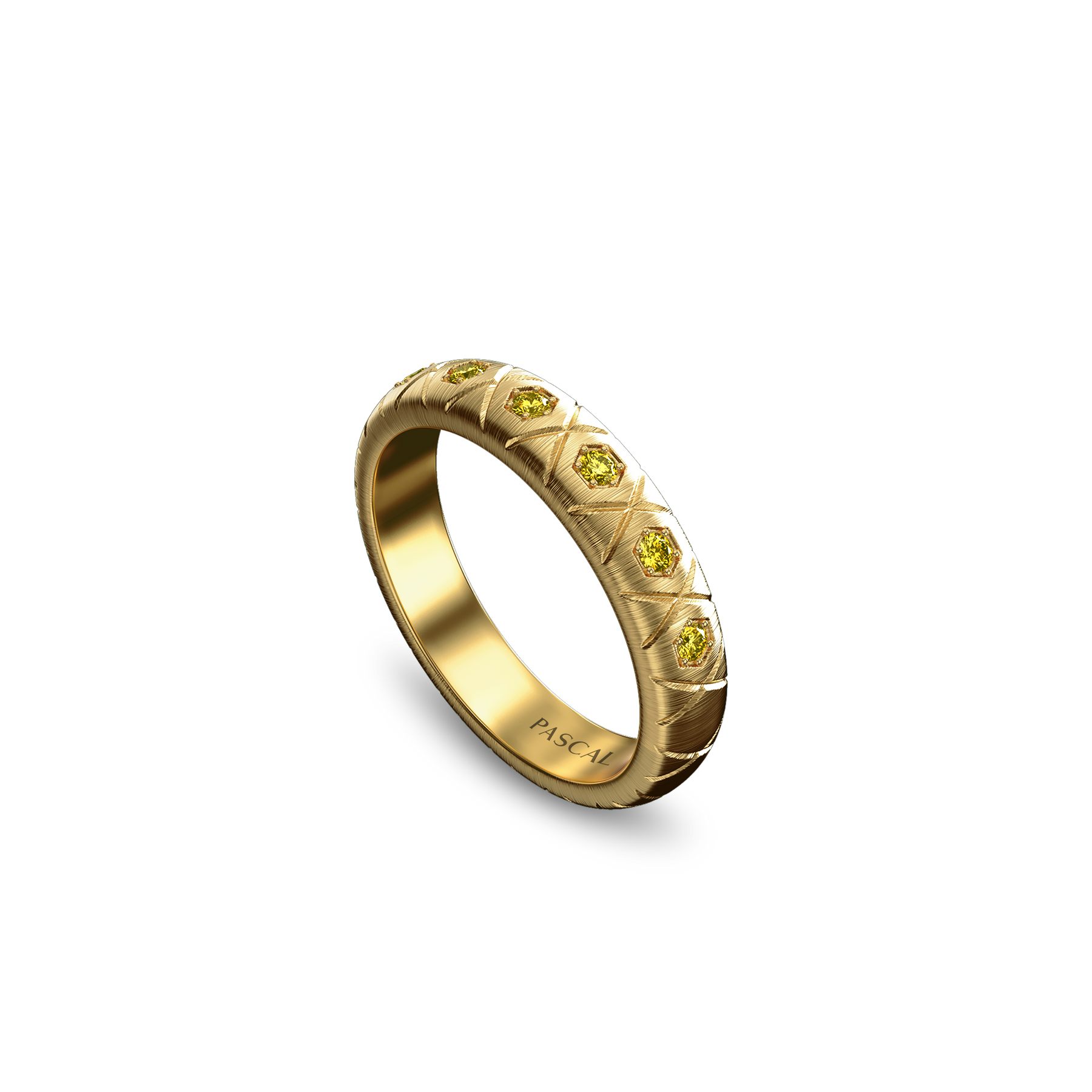 Honeycomb Band Ring, Yellow Diamond