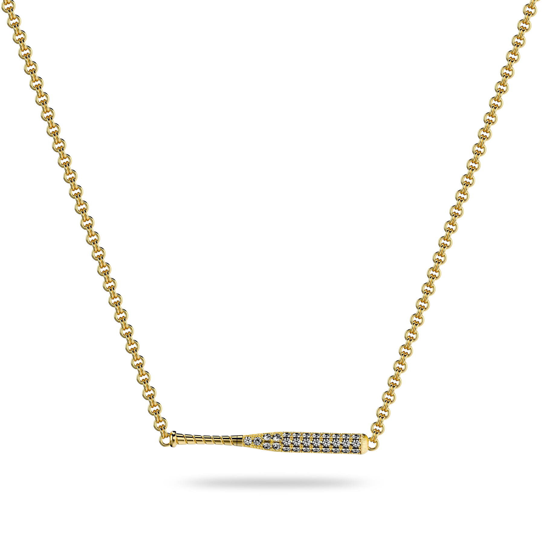 Collar "The Baseball" con colgante de bate, pavé de diamantes blancos
