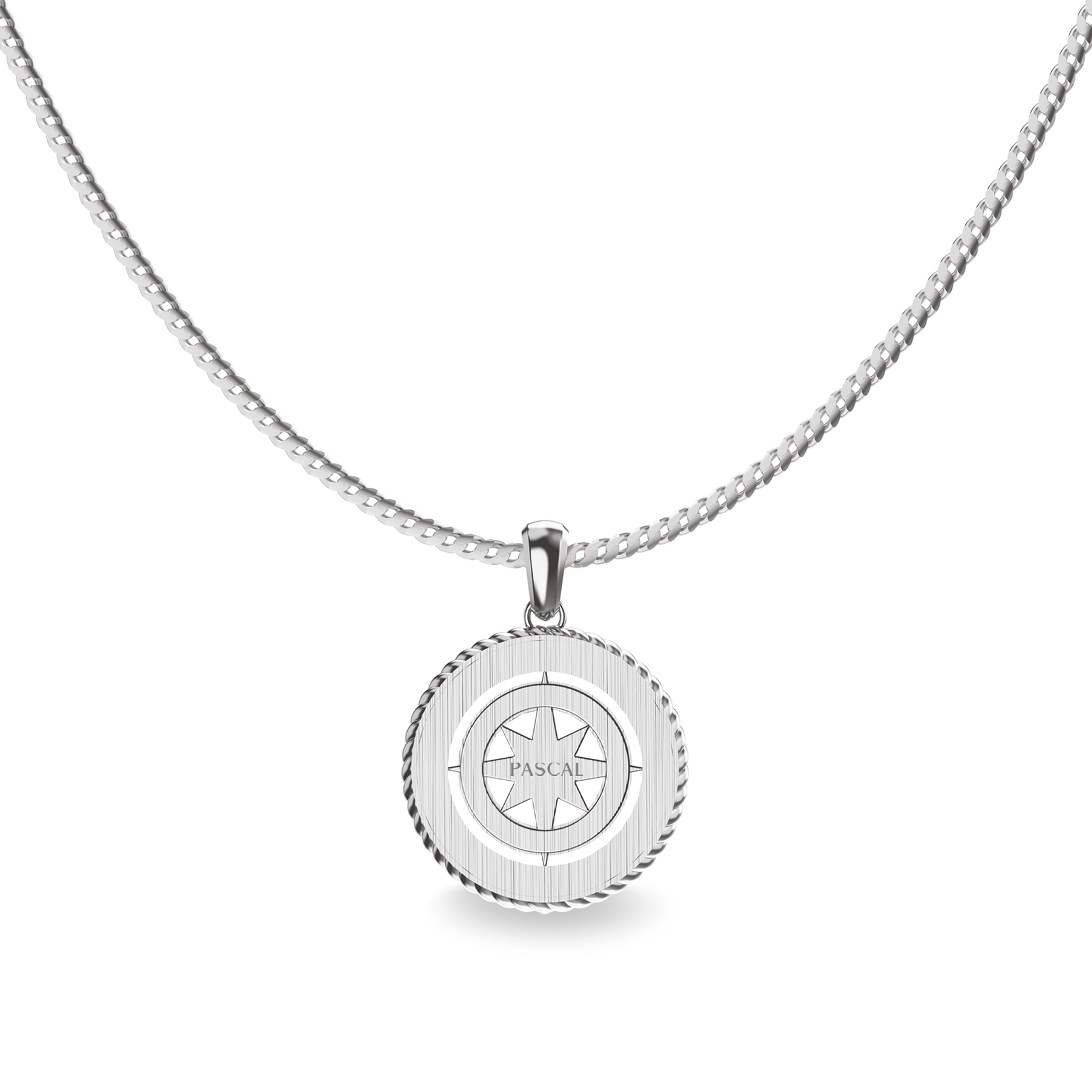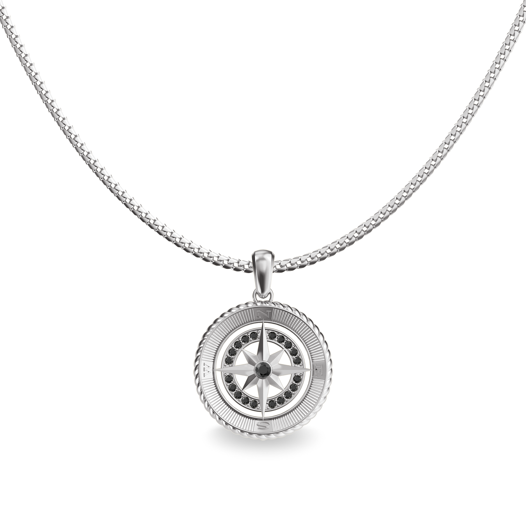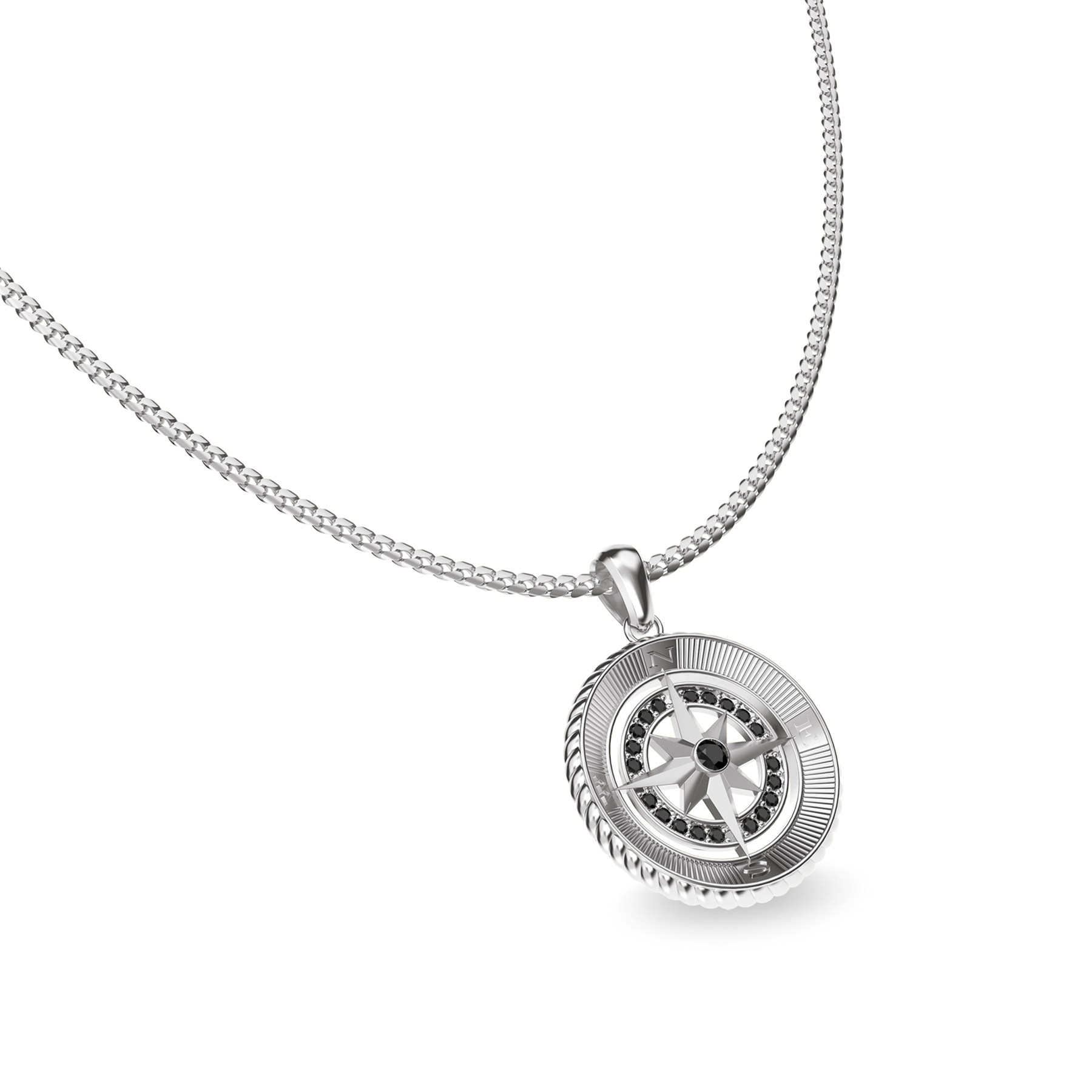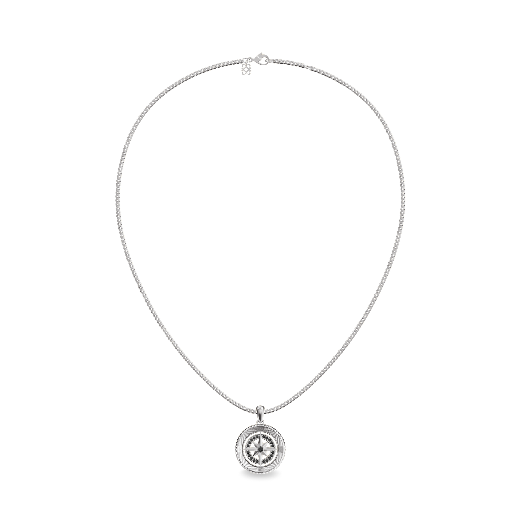 Inspired by the compass, this necklace distills a sense of direction and strength into a refined pendant. The round pendant features a clearly layered structure, with a sculpted compass star at its center, symbolizing inner resolve and a forward path.