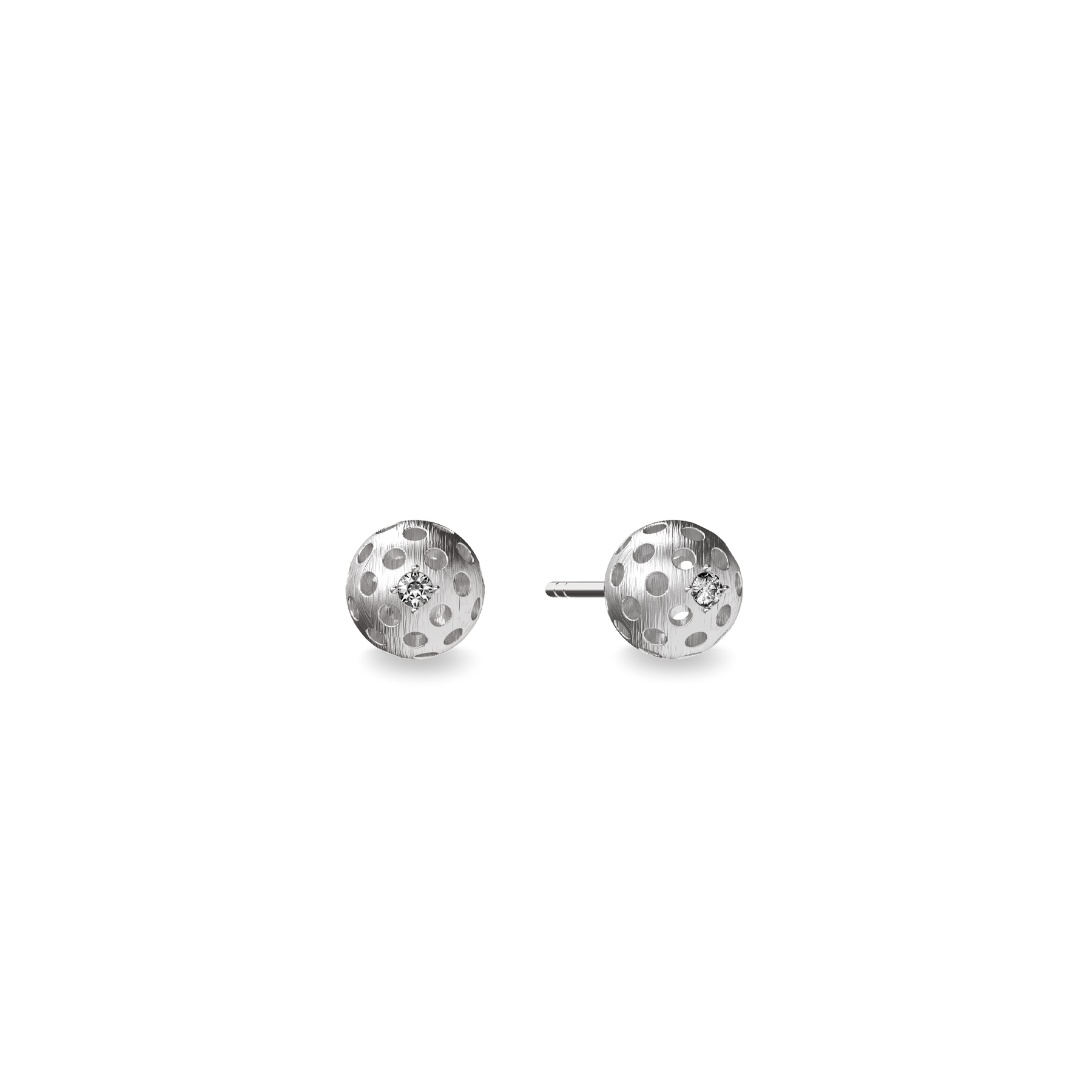 'The Pickleball' Ball Stud Earrings, White Diamond
