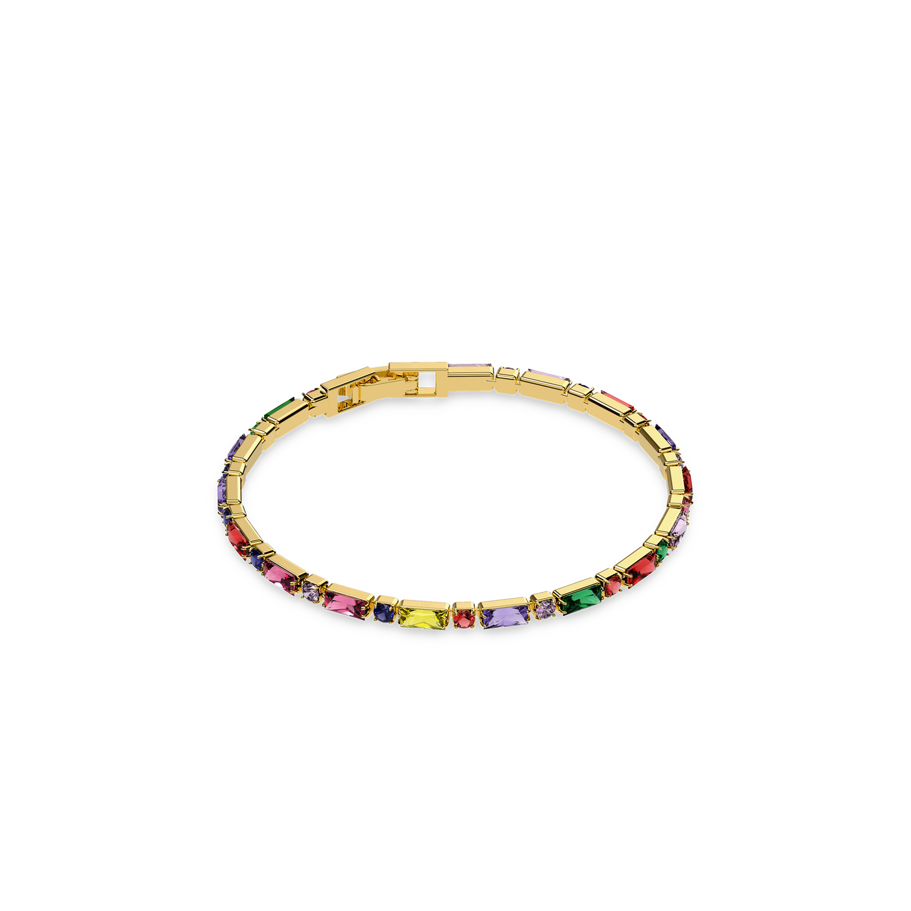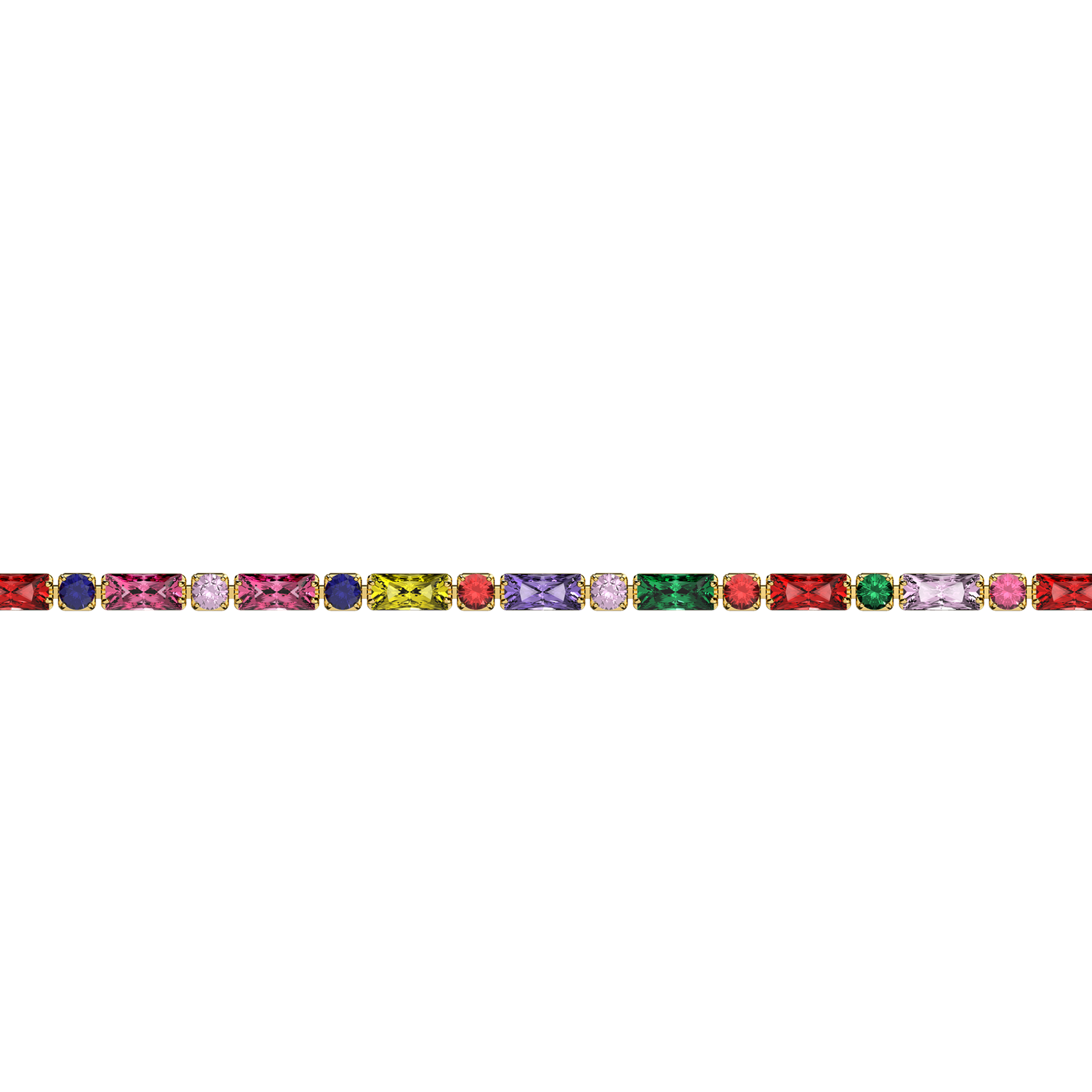 This elegant tennis bracelet alternates rectangular and round gemstones for a dynamic yet harmonious effect. The contrasting shapes create visual rhythm while maintaining a sleek, refined silhouette. Each stone is precisely set to enhance brilliance, ensuring the bracelet catches the light from every angle. A versatile piece, it blends seamlessly with other jewelry or shines as a standalone statement.