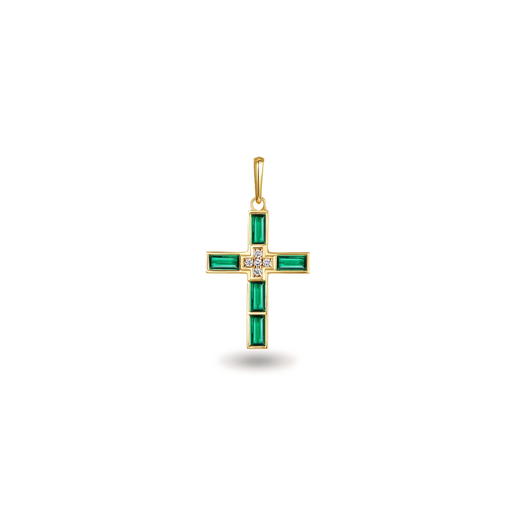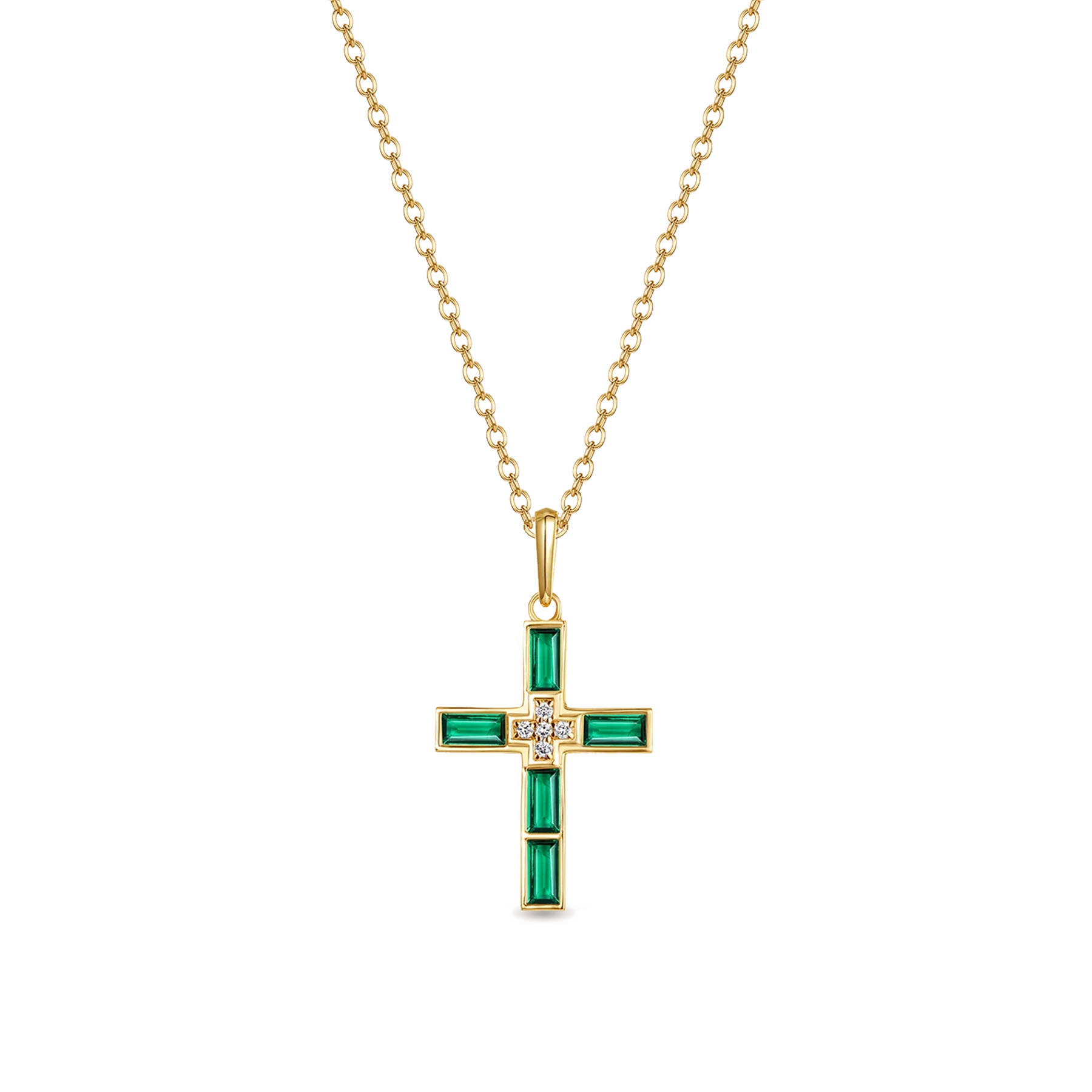 Un pendentif croix au design unique avec un centre surélevé orné de 5 diamants cultivés en laboratoire. Chacun des quatre bouts présente une pierre précieuse colorée cultivée en laboratoire, soit un total de 5. Choisissez de l'associer à une chaîne ou de le porter seul.