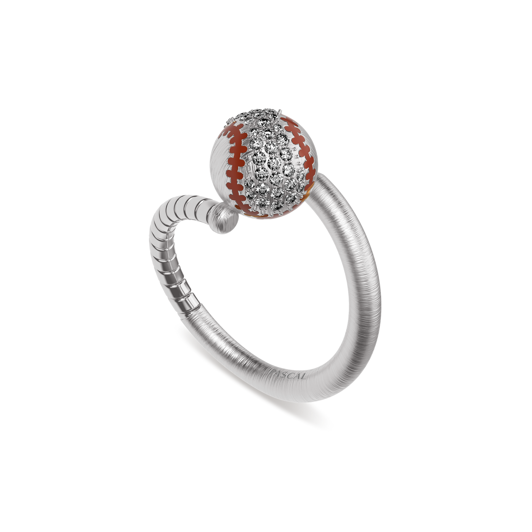 Bague "The Baseball" balle et batte, pavé de diamants blancs