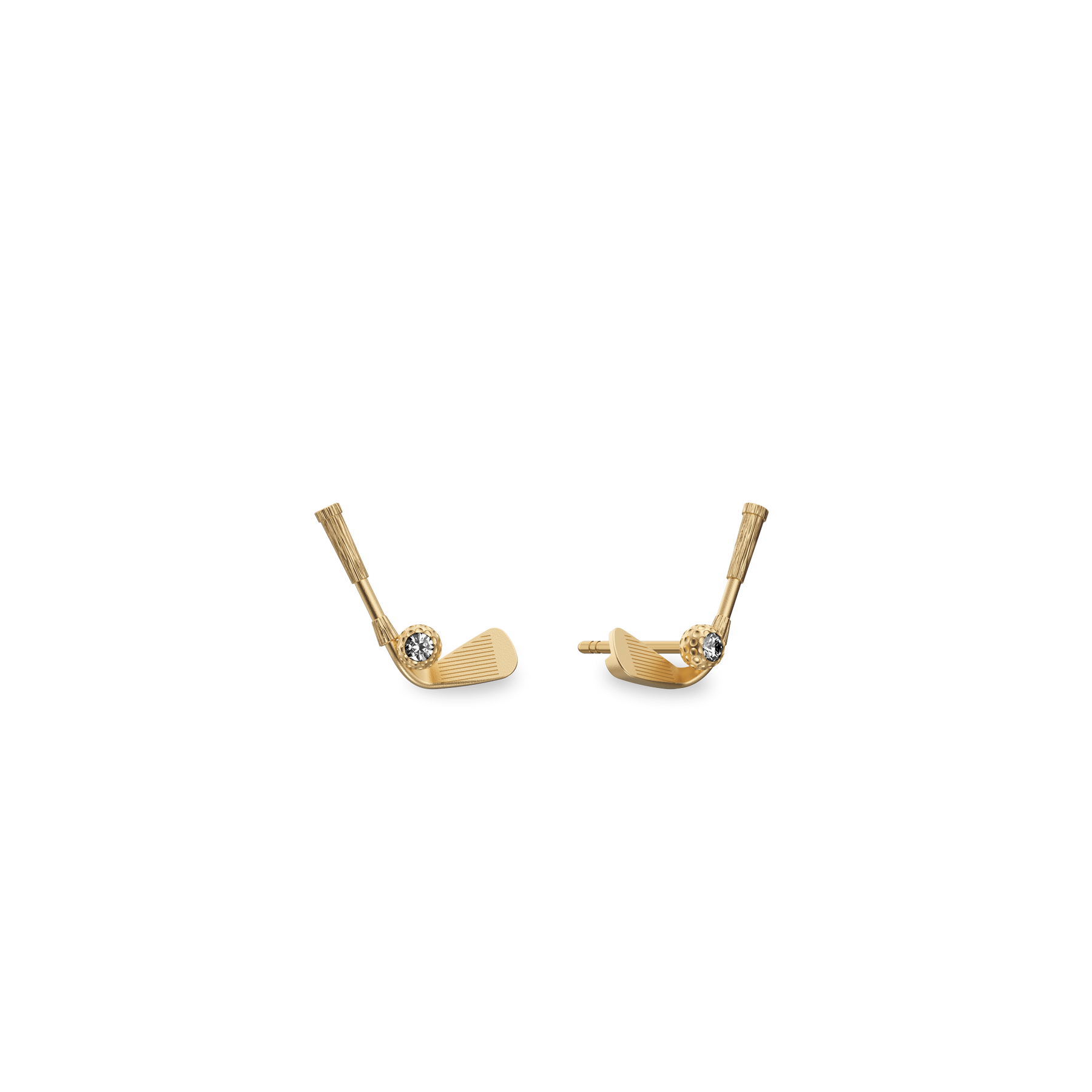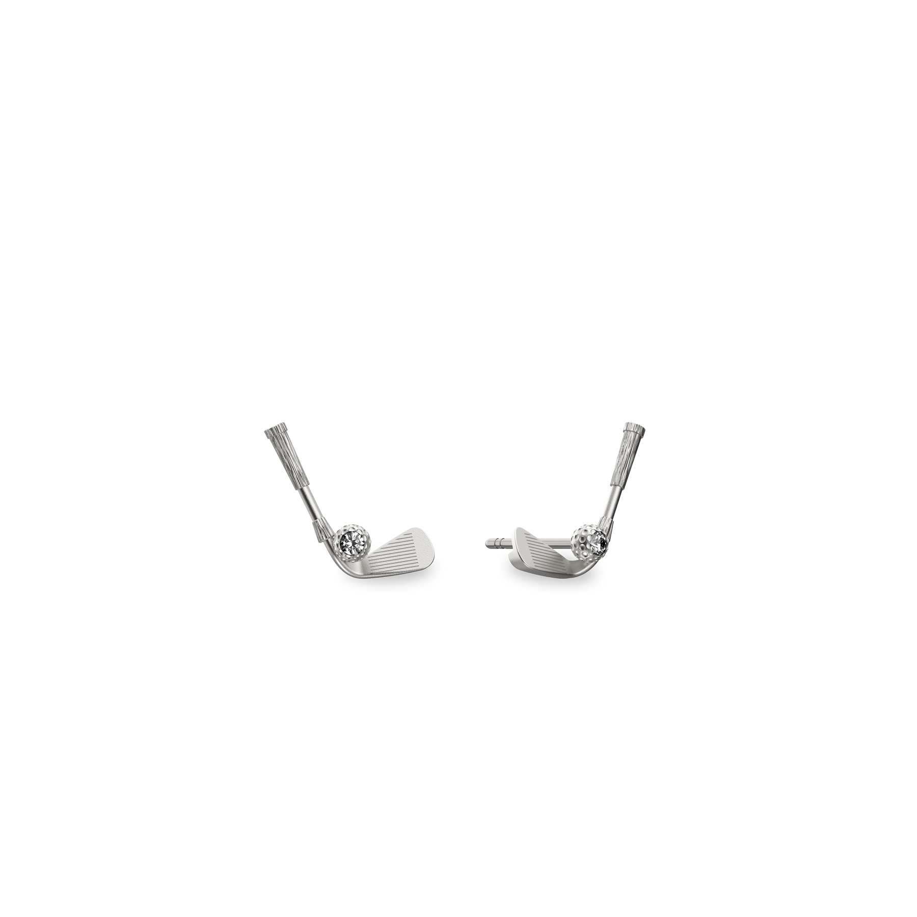 Boucle d'oreille clou "The Golf" balle et club, diamant blanc