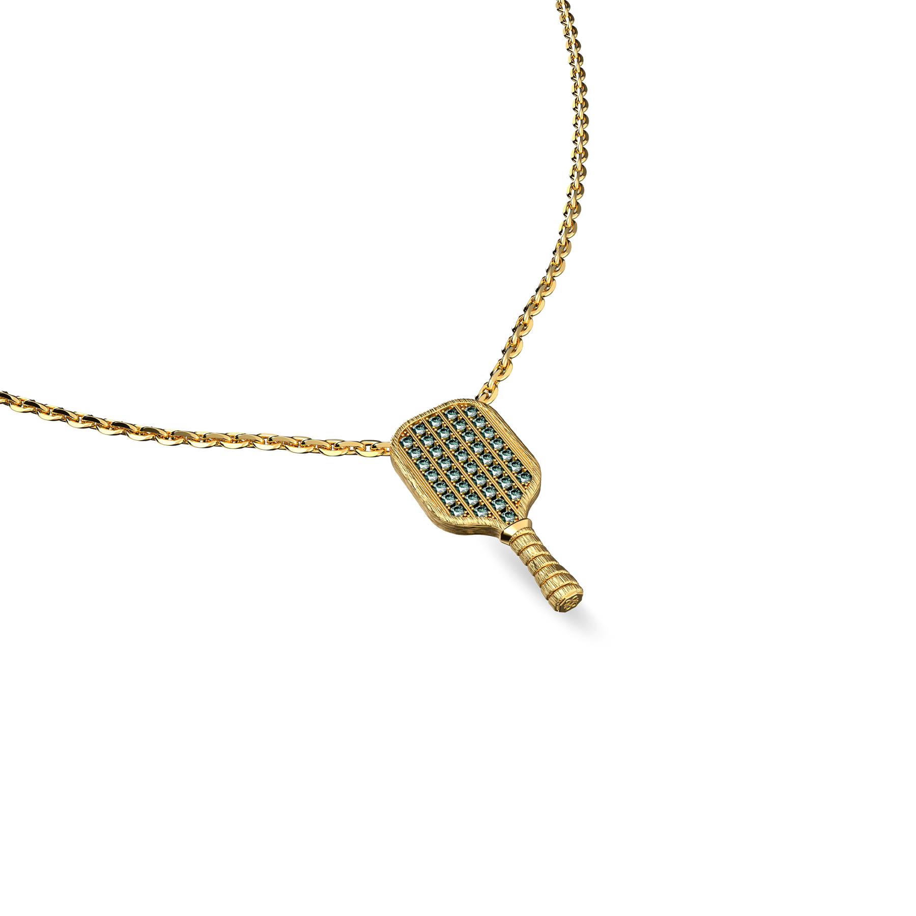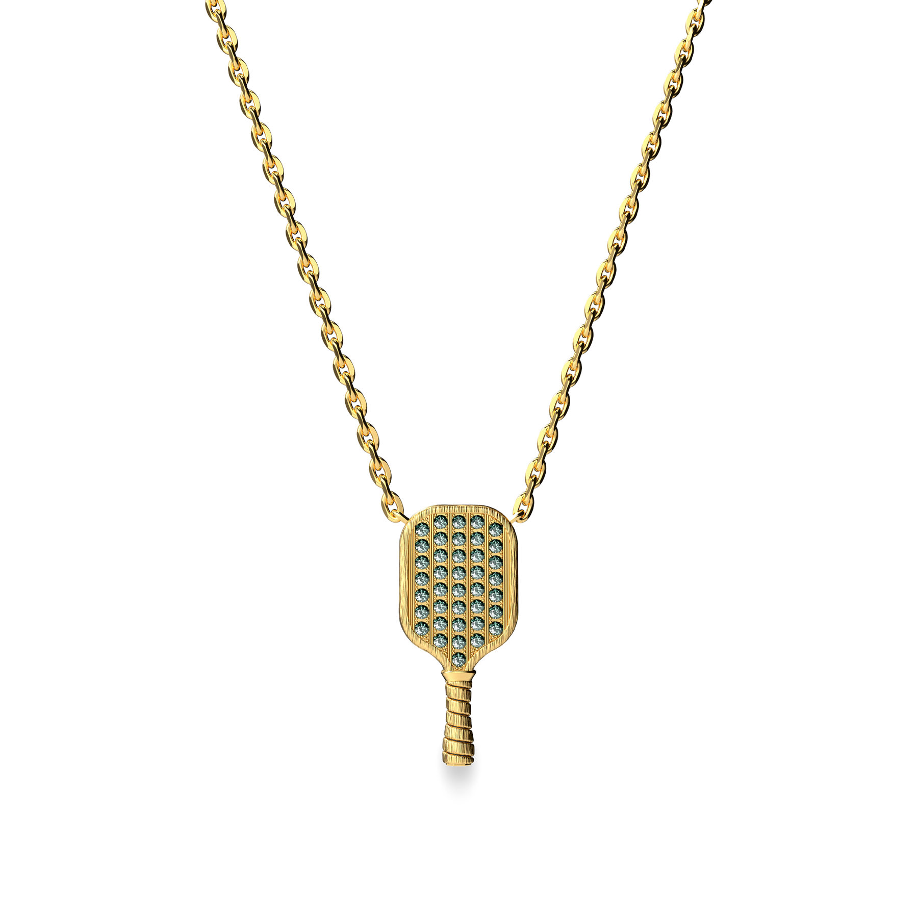 'The Pickleball' Paddle Necklace, Green Diamond Pavé