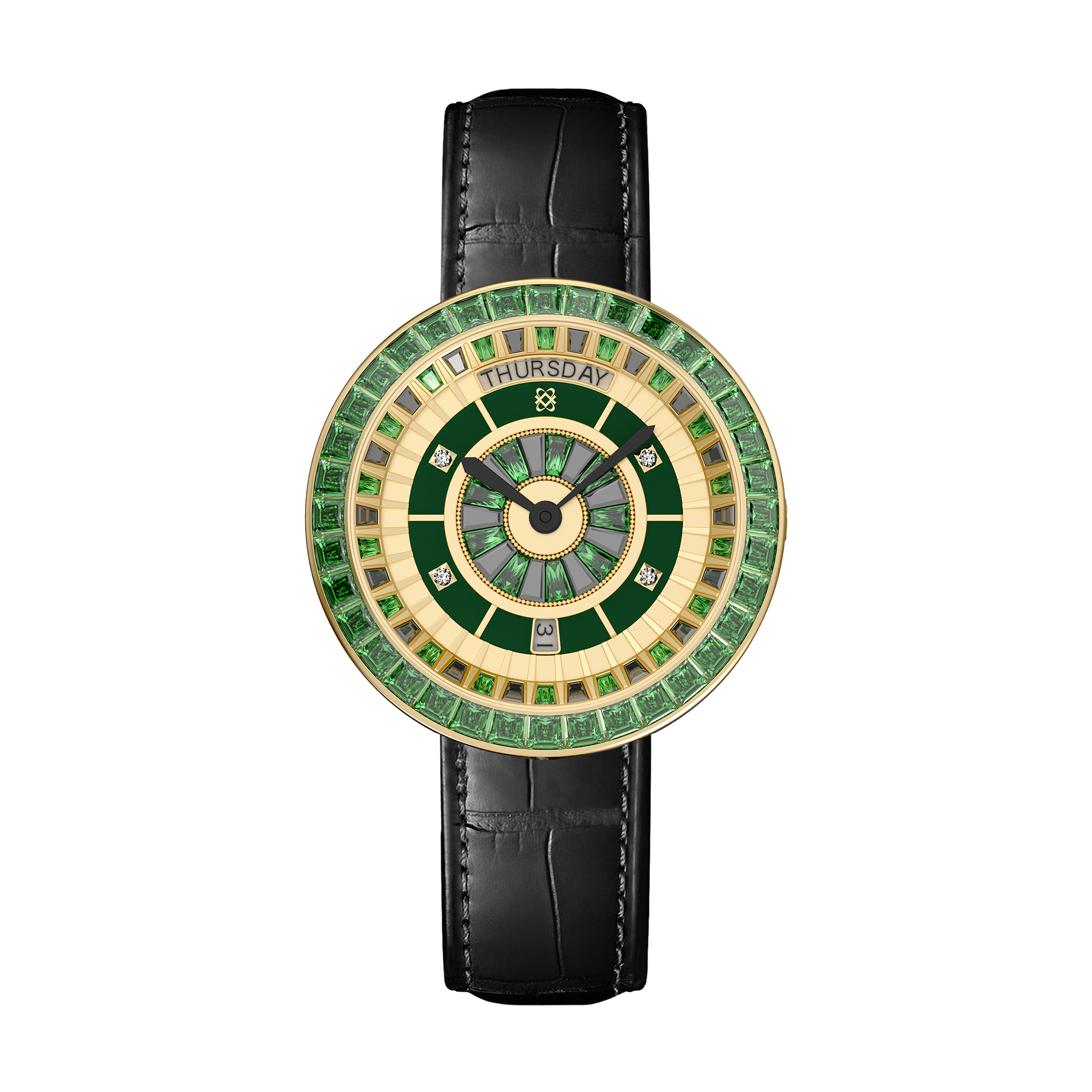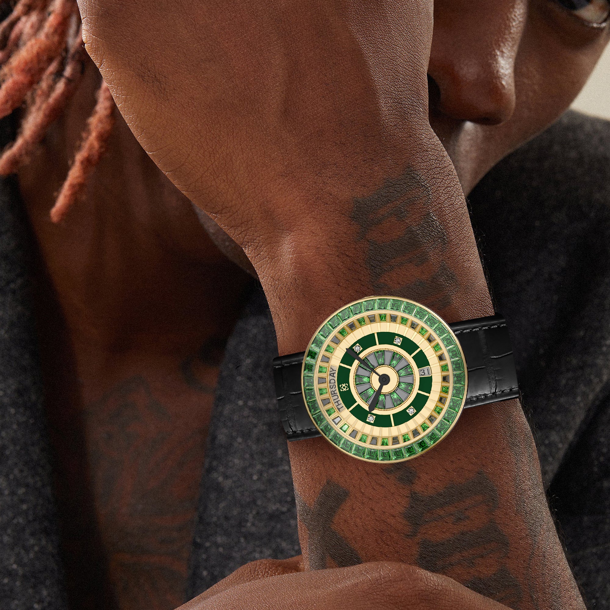 Rompi le regole del design tradizionale con gli Orologi Paradoxe con Diamanti di PASCAL. Questo straordinario orologio di lusso presenta diamanti da 0,3 ct, rendendolo un pezzo unico nella nostra collezione di orologi. Il suo design con quadrante grande e l’estetica distintiva lo rendono perfetto per chi desidera catturare l’essenza del tempo fluido. Il movimento svizzero garantisce una precisione impeccabile, mentre i cinturini intercambiabili ti permettono di personalizzare il tuo look per ogni occasione. Un diamante verde di lusso sulla corona aggiunge un tocco speciale, rendendolo un vero capolavoro senza tempo.