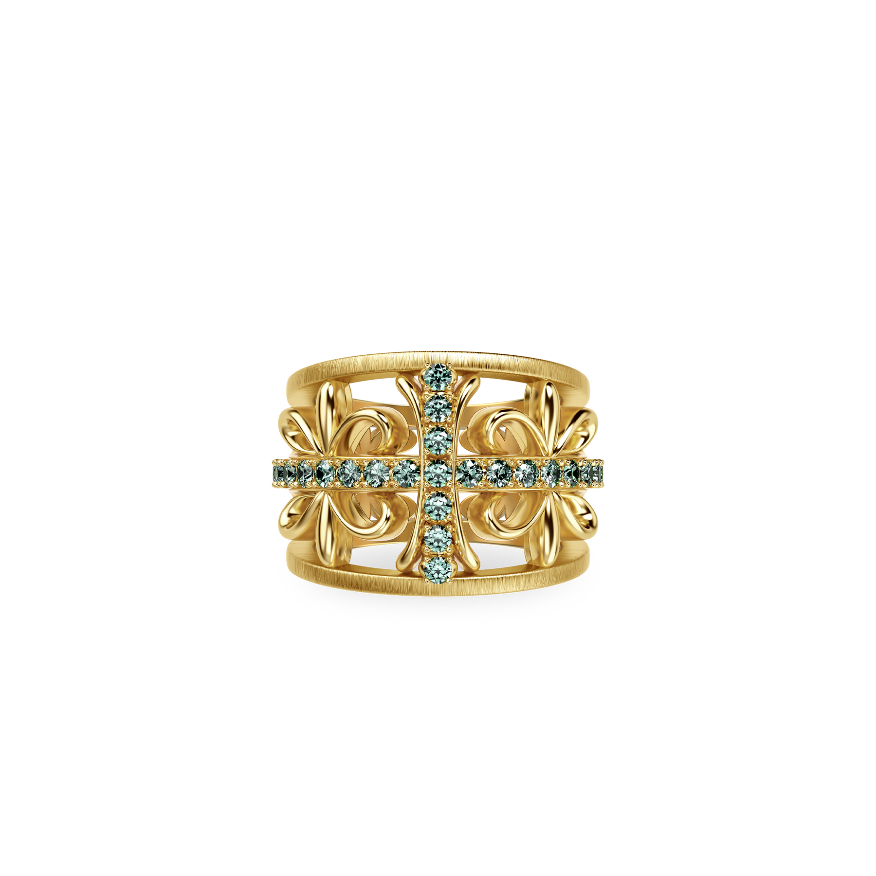 At the center, a cross-shaped structure serves as the core design element. A total of 0.805ct green lab-grown diamonds are pavé-set along the vertical and horizontal lines of the cross, forming a continuous and concentrated focal point with an even, refined color sparkle.