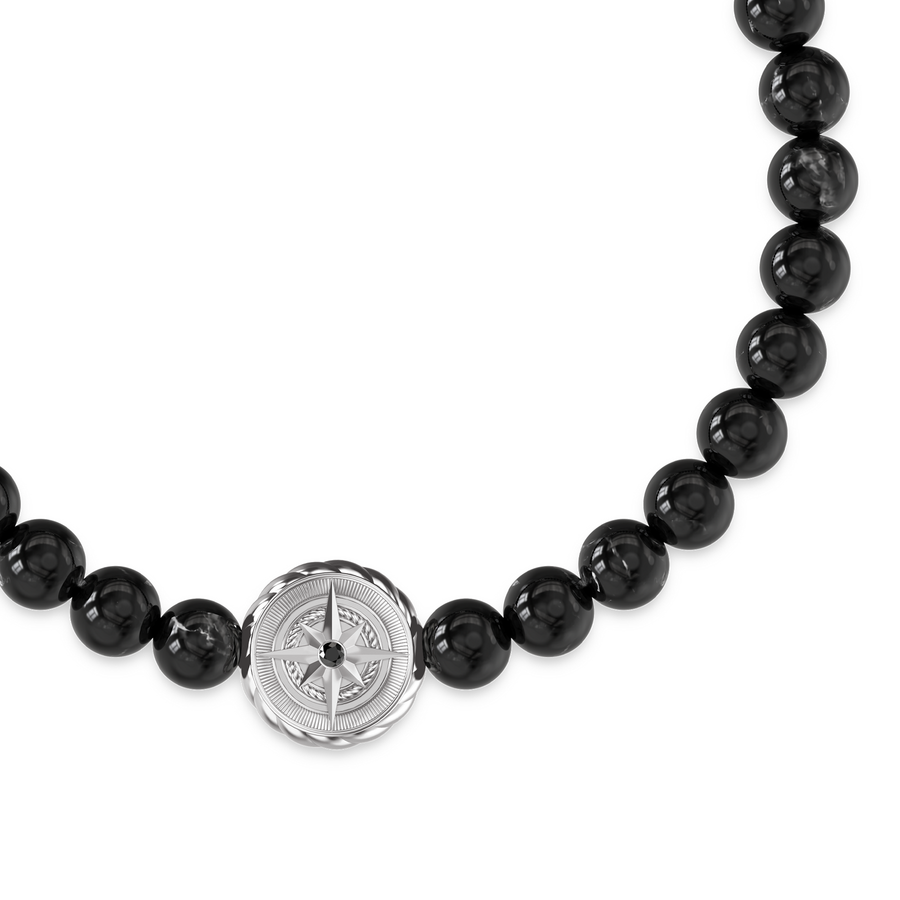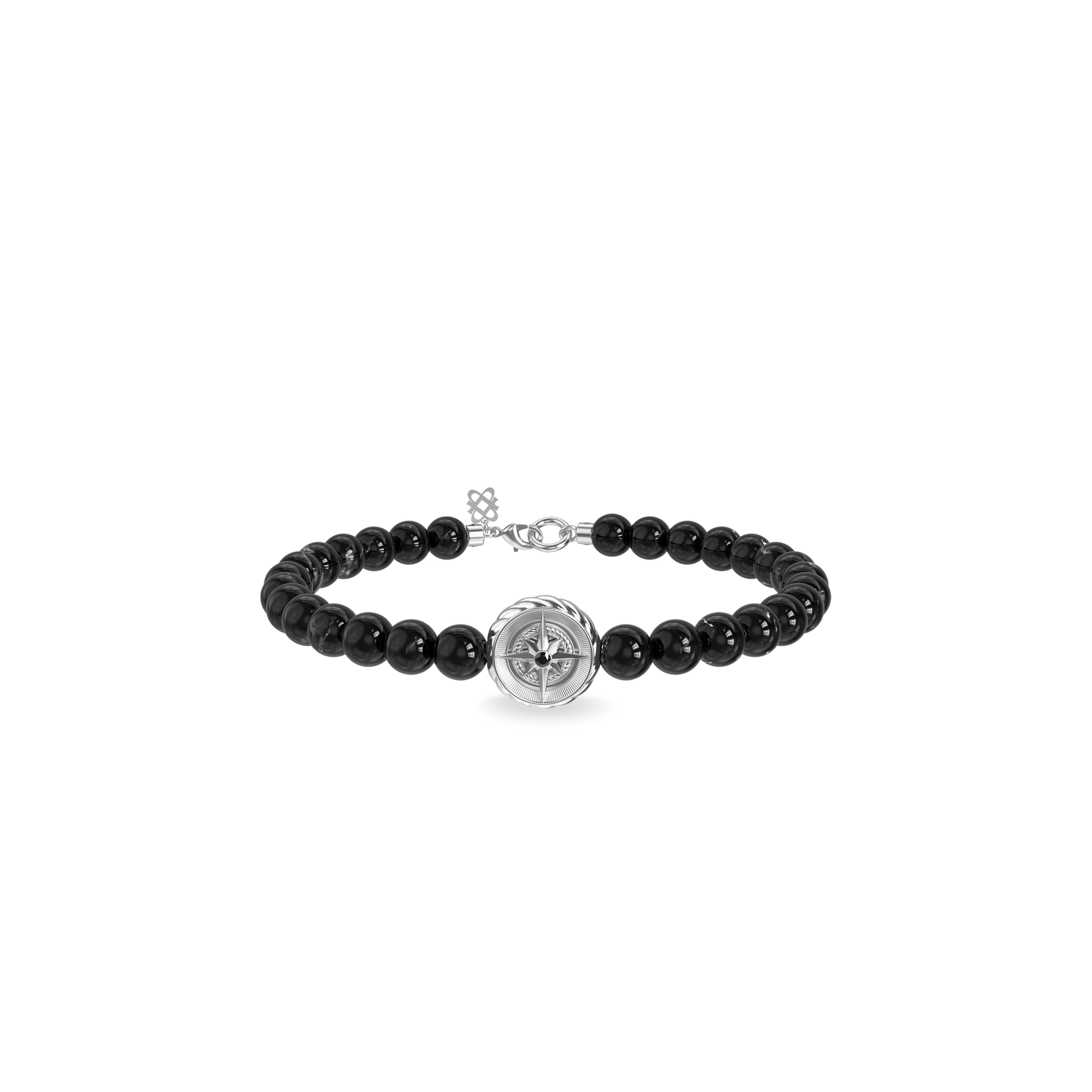 Centered on the compass motif, this bracelet brings a sense of direction into a refined, wearable form. The round compass element sits at the heart of the beaded design, with a clearly defined structure and dimensional star lines that create a strong visual focal point.