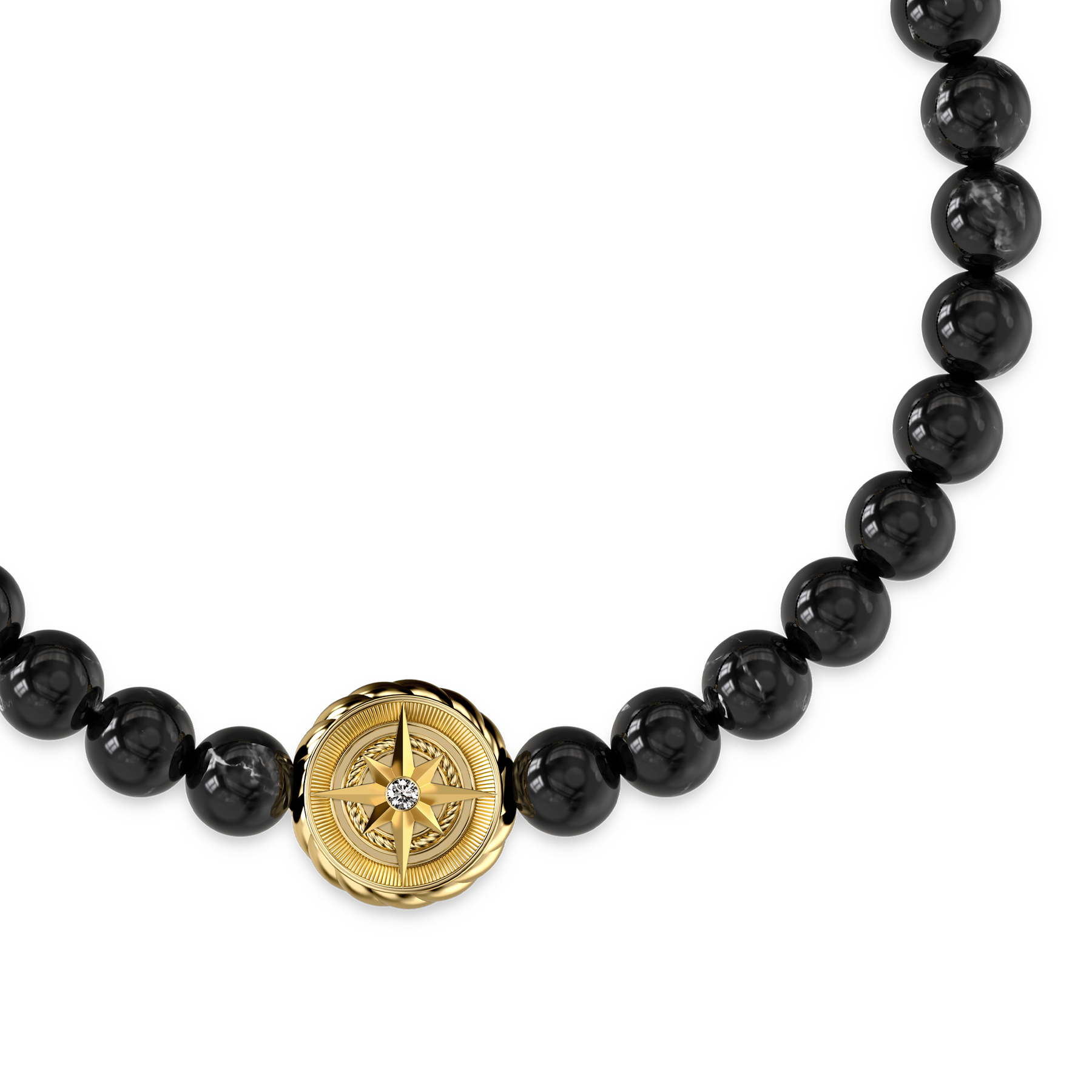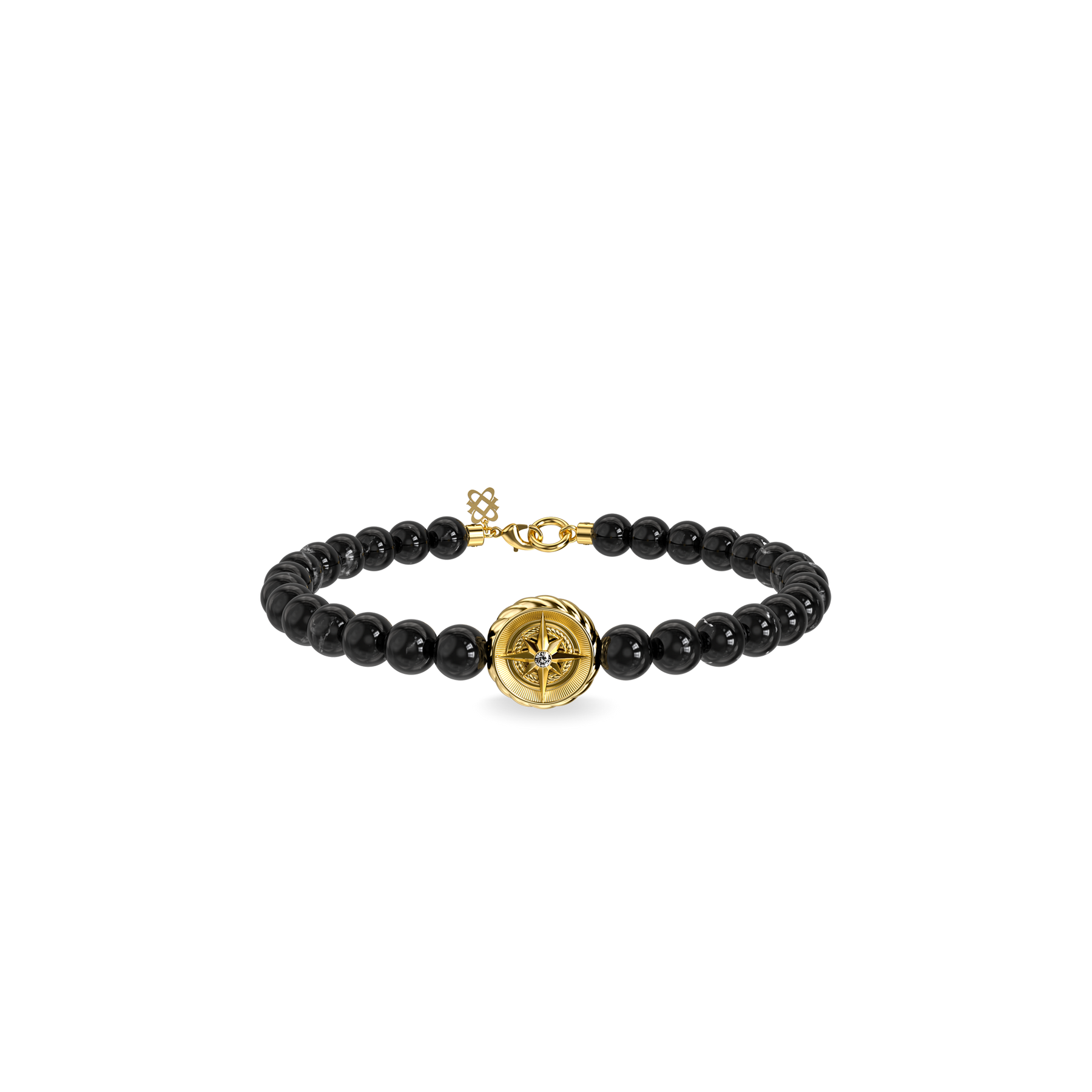 Centered on the compass motif, this bracelet brings a sense of direction into a refined, wearable form. The round compass element sits at the heart of the beaded design, with a clearly defined structure and dimensional star lines that create a strong visual focal point.