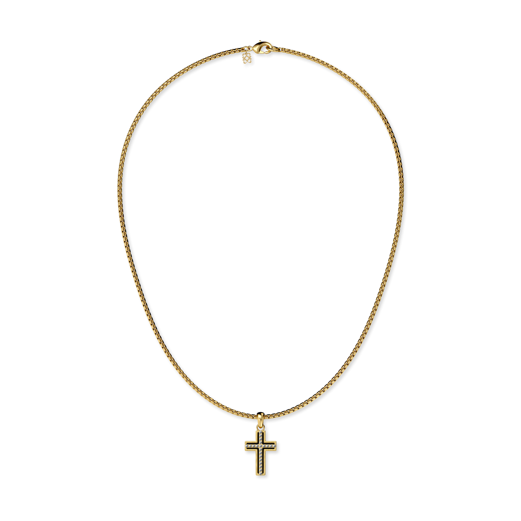 Questo pendente si concentra sul motivo senza tempo della croce, con uno sfondo in smalto nero profondo accentuato da un pavé di brillanti diamanti coltivati in laboratorio che tracciano una silhouette radiante a forma di croce. Il contrasto tra oscurità e luce crea un equilibrio tra forza solenne ed eleganza moderna.