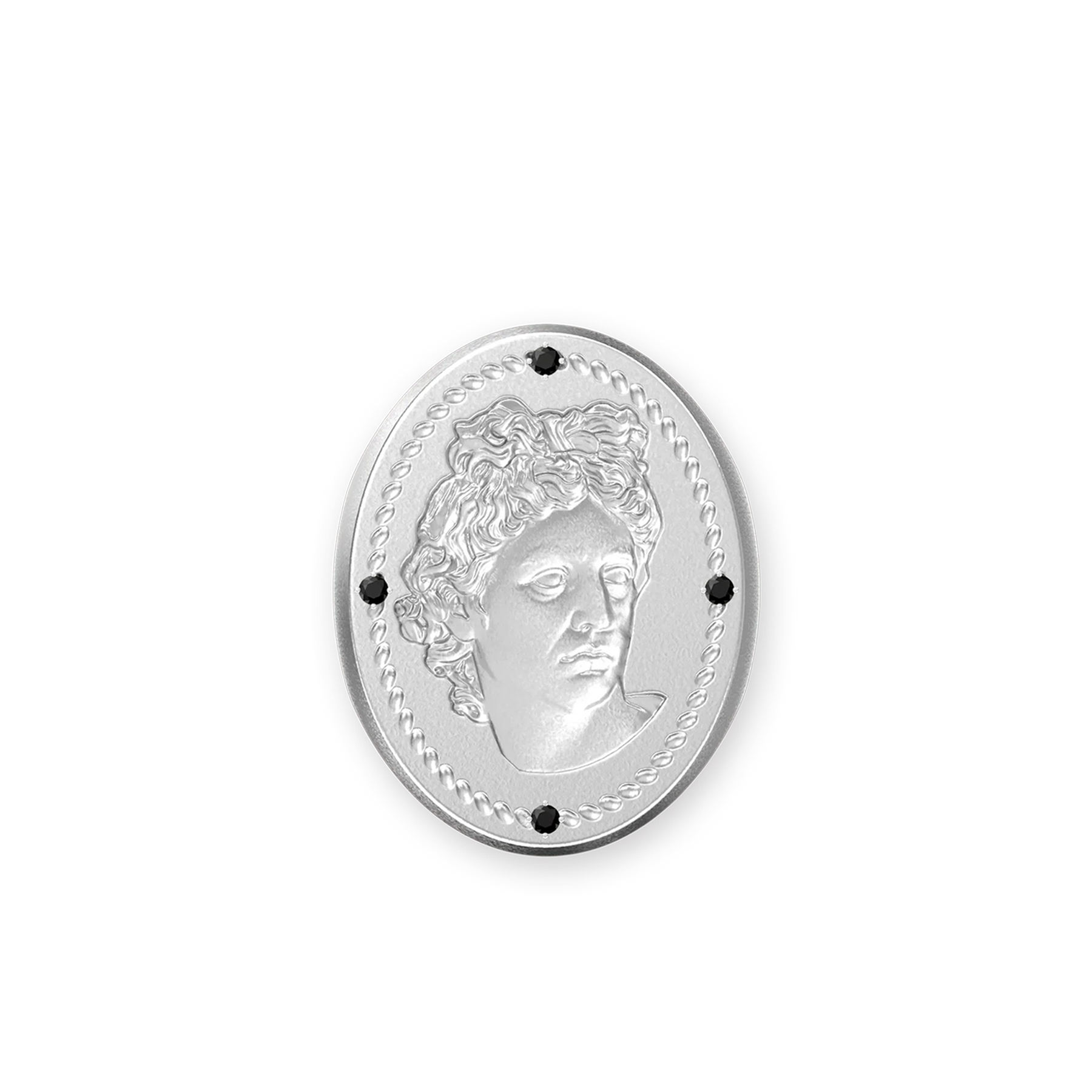 Il classico design dell'anello sigillo presenta un'incisione a rilievo finemente dettagliata del profilo di Apollo, dove contorni chiari delineano la sua espressione ferma ma aggraziata. Le ciocche di capelli scolpite e i tratti del viso raffinati simboleggiano l'armonia della luce e dell'ispirazione.
