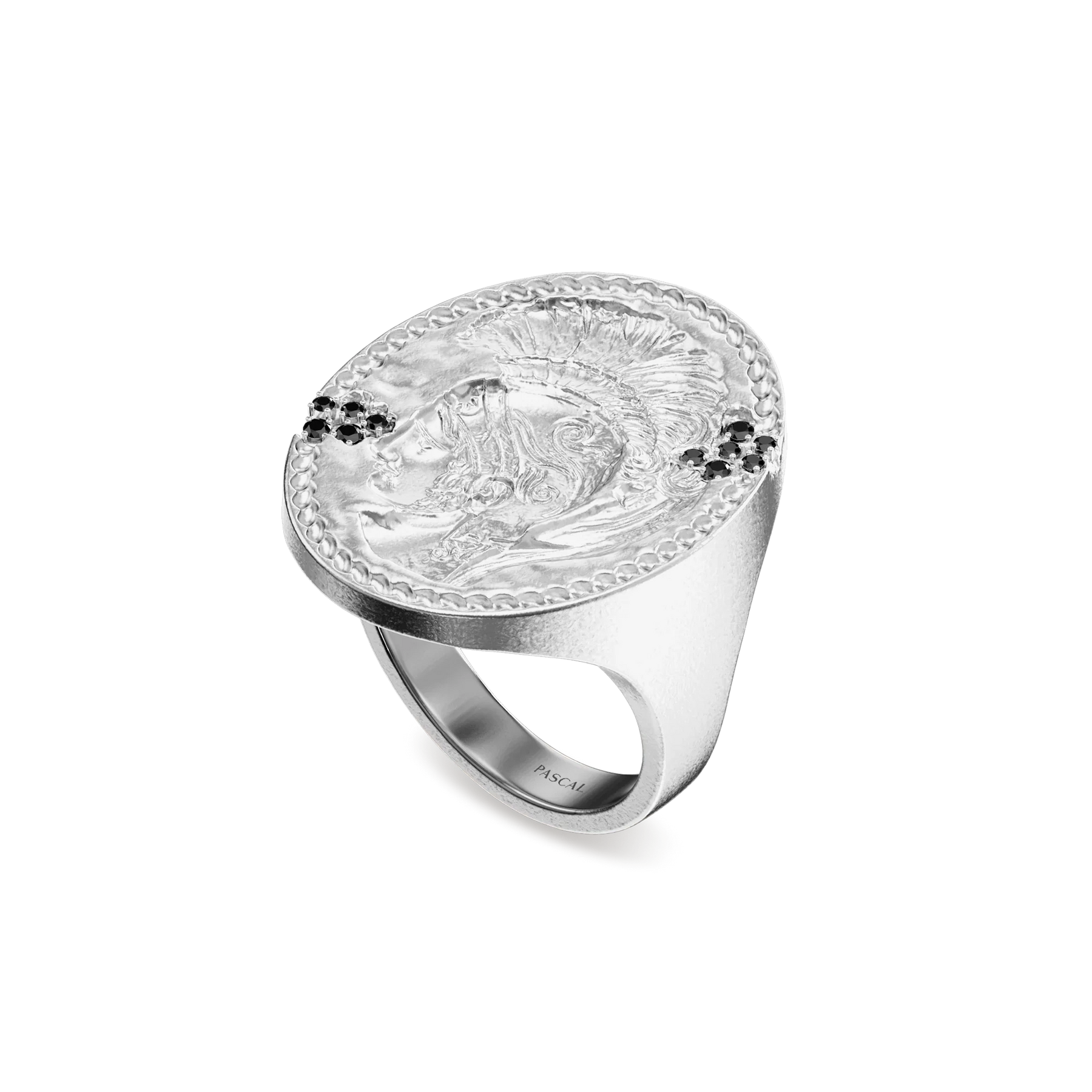 Ispirato ad Atena, l'antica dea greca della saggezza e della guerra — incarnazione della ragione e del coraggio, e protettrice della città-stato. Il classico design dell'anello sigillo presenta un intaglio finemente scolpito in rilievo del profilo di Atena, con contorni chiari che delineano la sua espressione ferma ma aggraziata. I dettagli intricati del suo elmo e dei capelli fluenti simboleggiano l'equilibrio tra saggezza e forza.