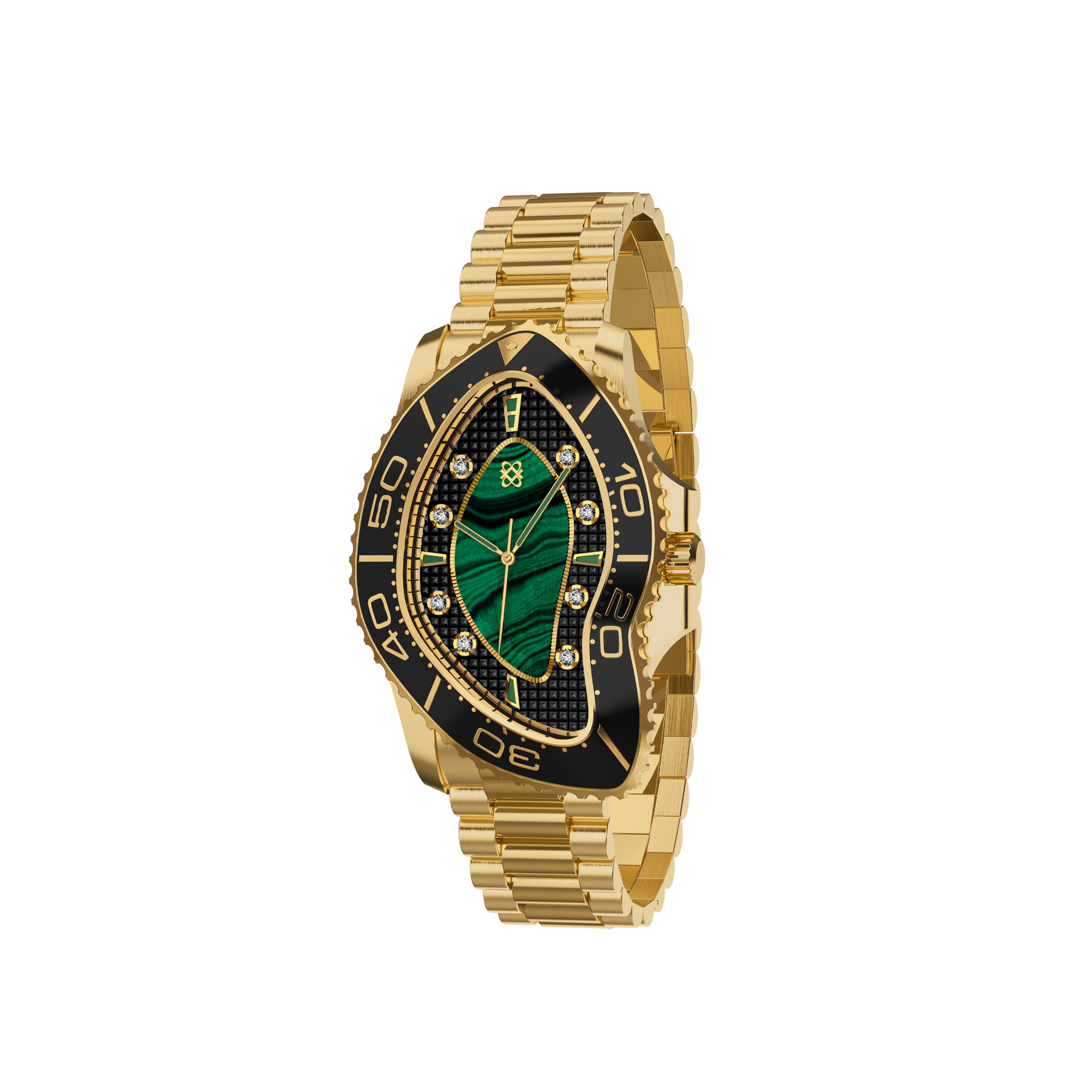 0.14 Carat Diamond,  Midnight Malachite, Gold Tone