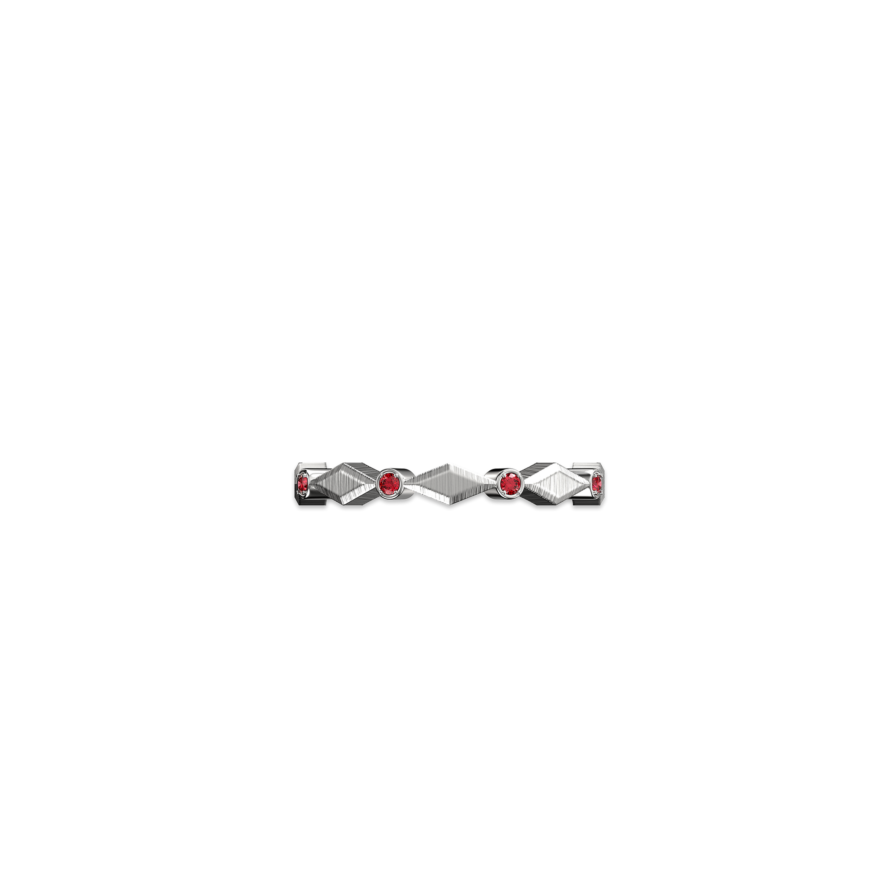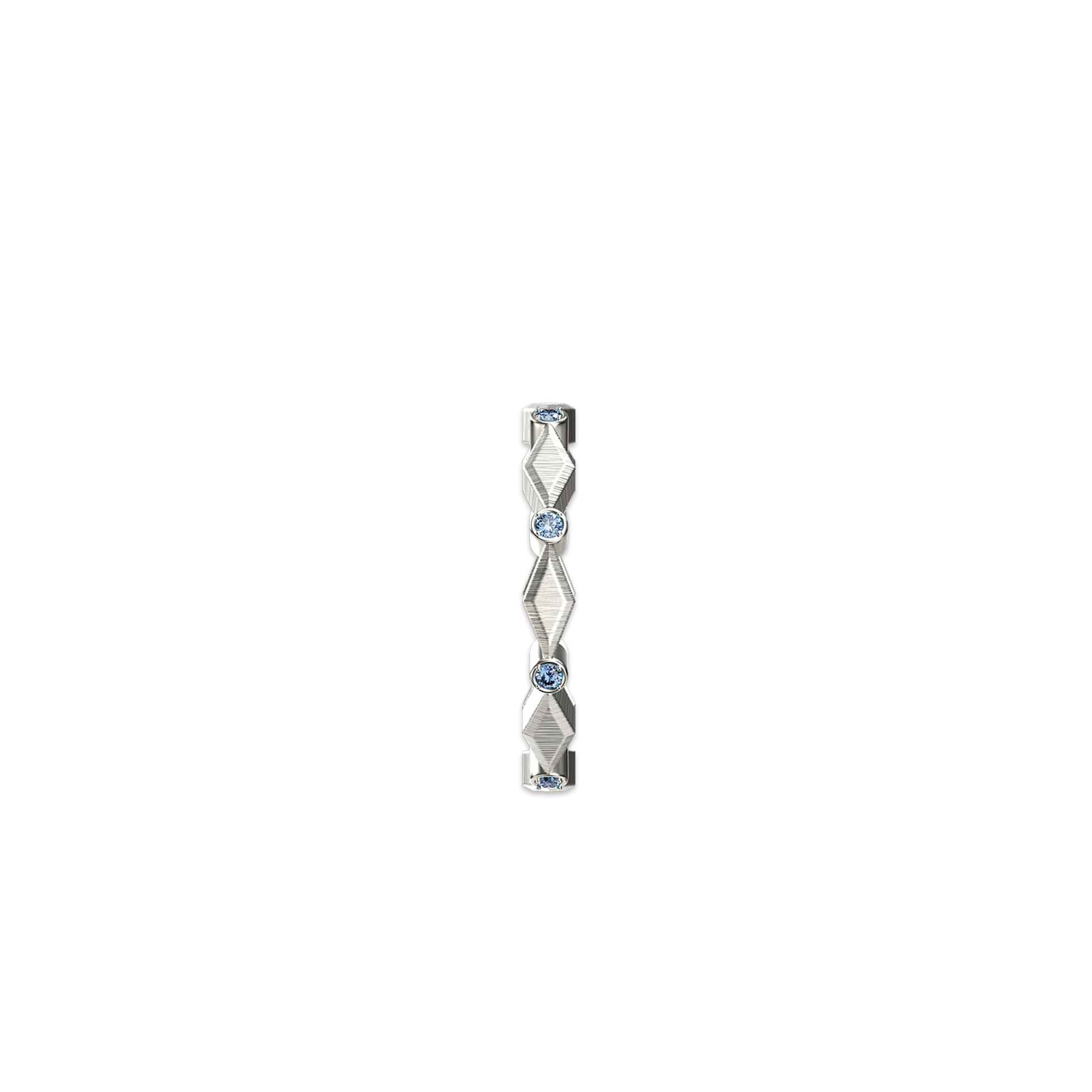 Modellato dal ritmo della simmetria geometrica, il motivo a rombo dell'anello scorre con sottile precisione. La sua finitura spazzolata rivela una texture metallica raffinata, dove la luce si muove dolcemente su ogni faccetta, svelando strati di ragione e grazia.