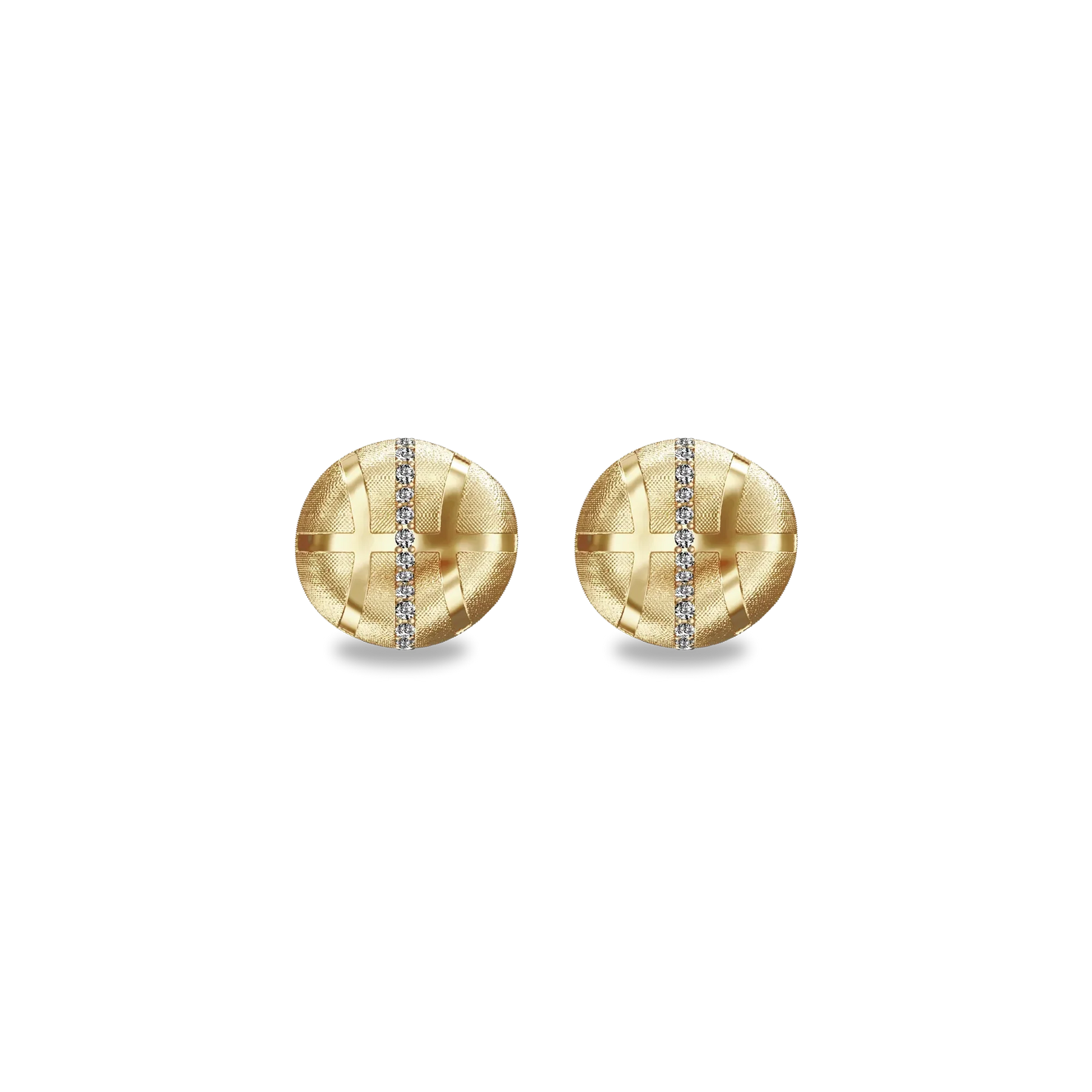 Orecchini a forma di pallone da basket "The Basketball" con perdita, diamanti bianchi a taglio diamante lineare