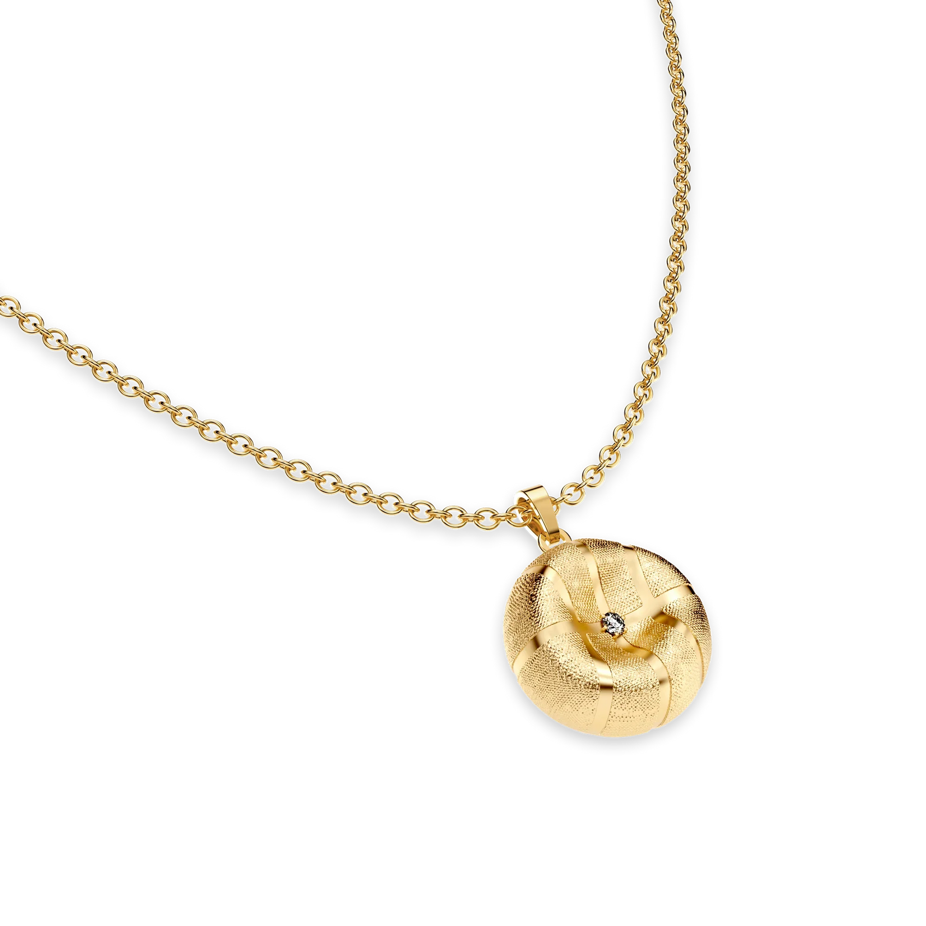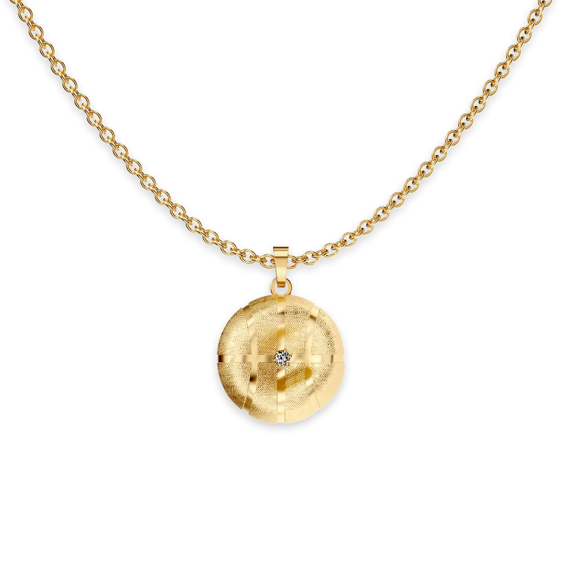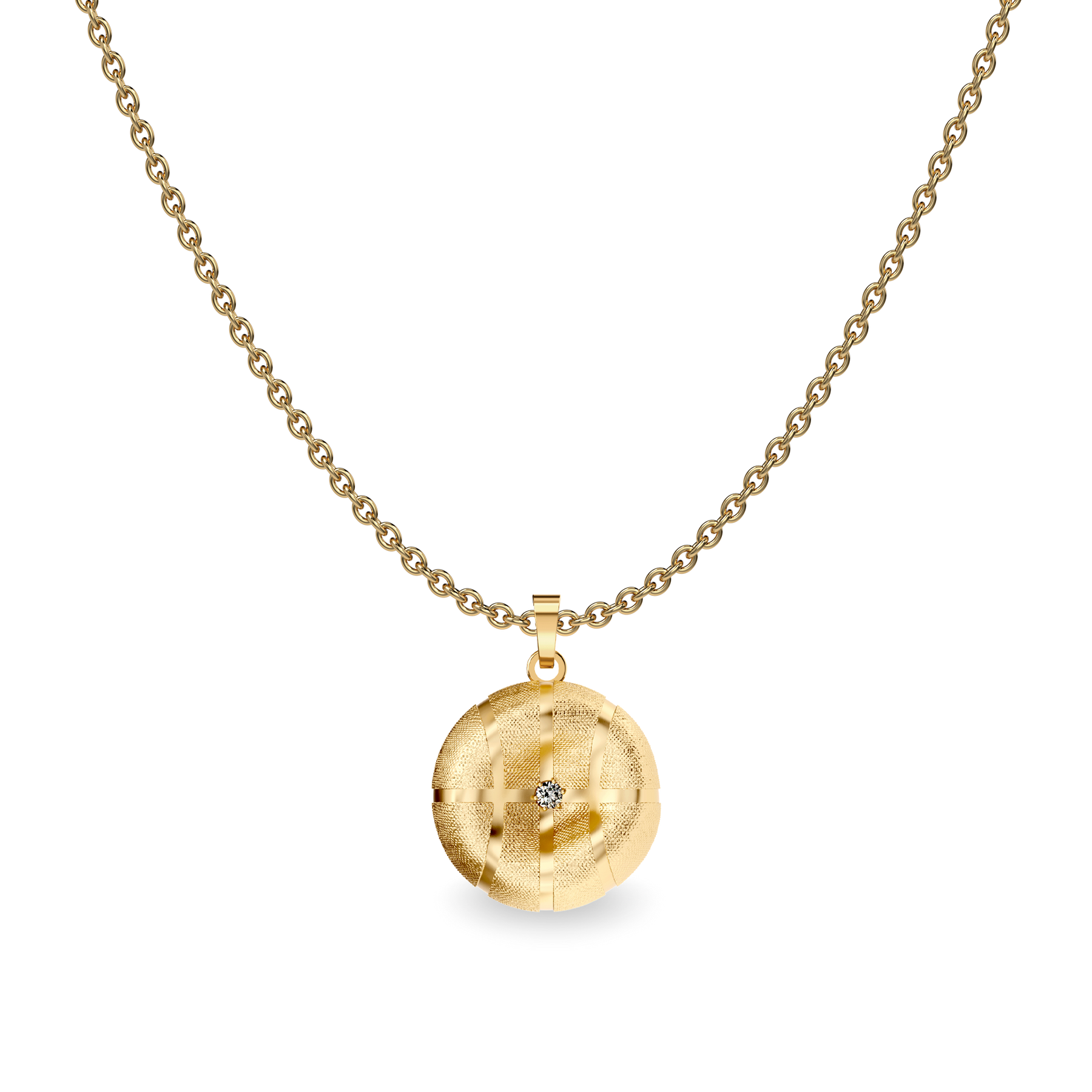 Meticolosamente realizzato, il ciondolo ricrea la venatura unica e le linee di cucitura di un pallone da basket, evidenziando l'energia grezza del gioco. Un abbagliante diamante coltivato in laboratorio è incastonato al centro, scintillante come gocce di sudore, illuminando l'anima della sfida e della determinazione.