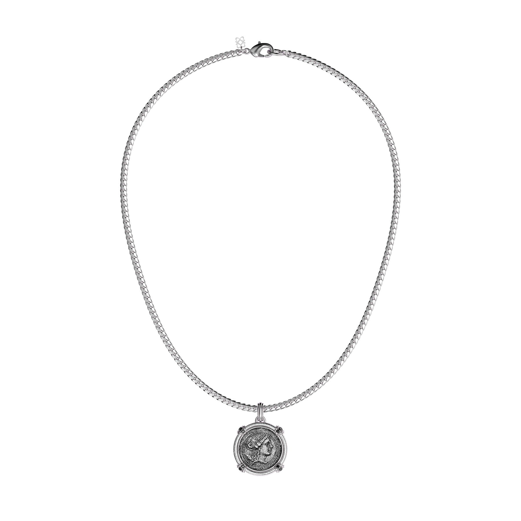Questo pendente è ispirato ad Artemide, la dea della caccia e della luna nella mitologia greca antica. Al centro si trova una moneta d'argento con il profilo raffinato della dea, simbolo di indipendenza, protezione e del potere misterioso della natura. Come una delle dodici divinità olimpiche, Artemide incarna la forza femminile e lo spirito di libertà, oltre a un legame mistico con la foresta e la luce della luna.