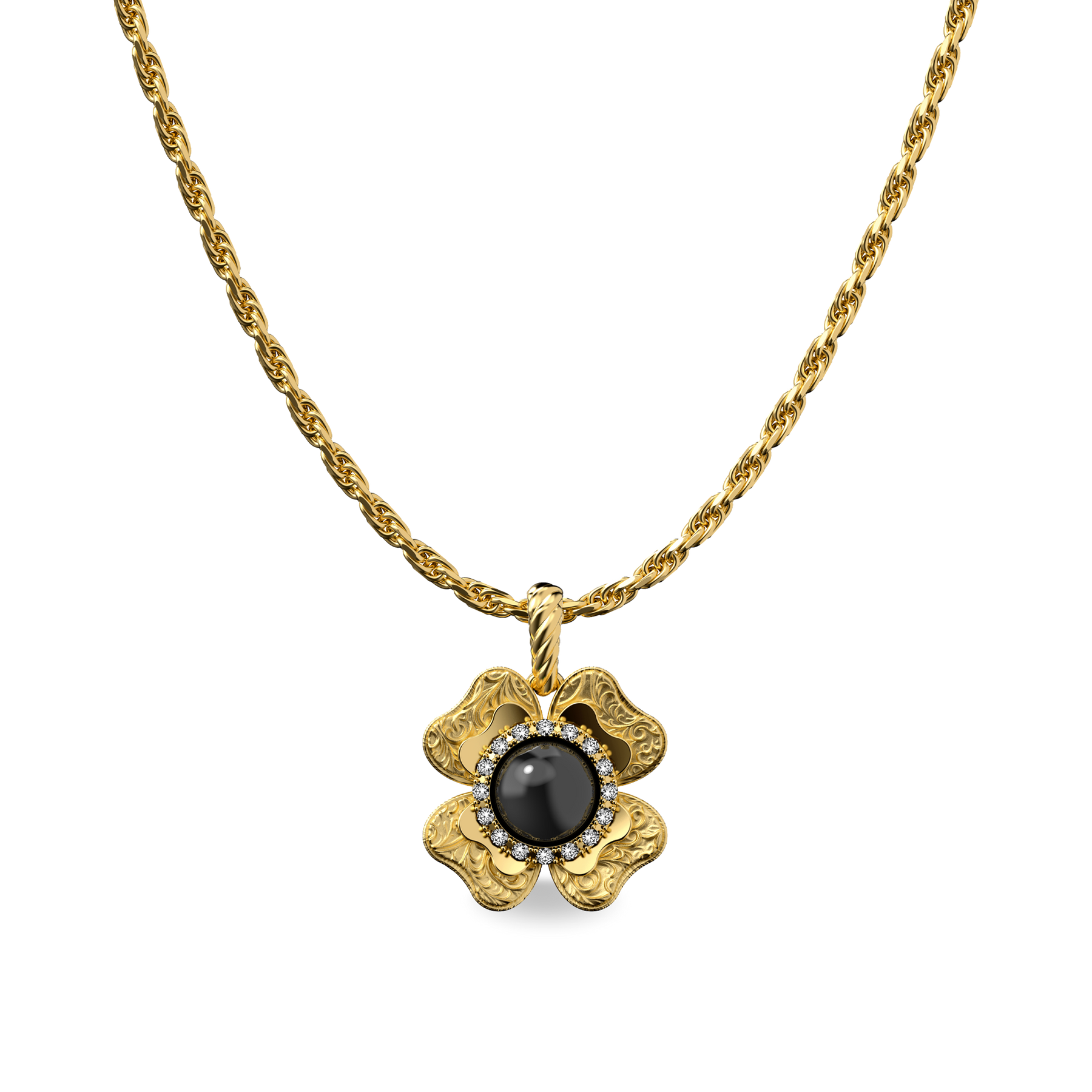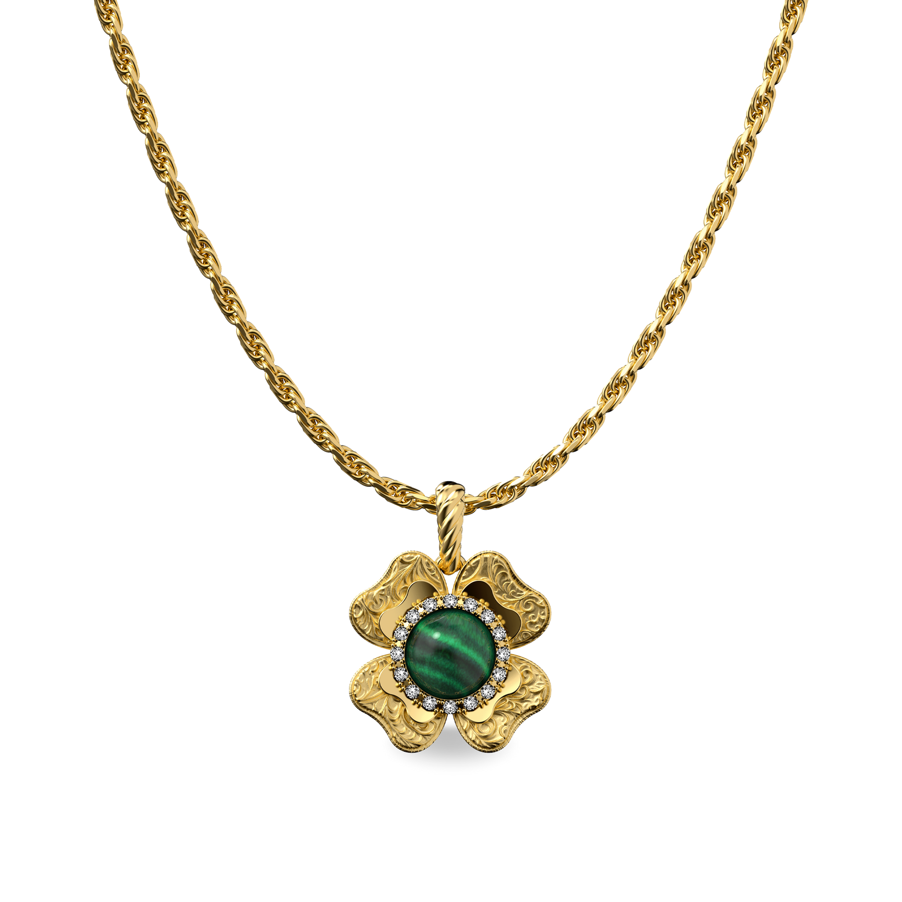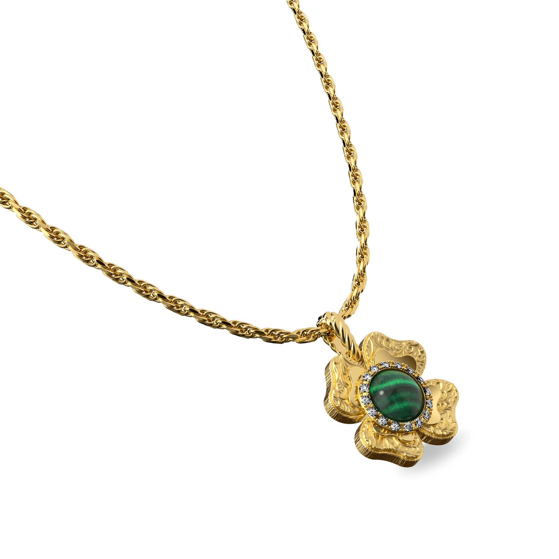 Il Trifoglio è un amuleto universale di speranza, armonia e buona fortuna—un elegante promemoria che l'abbondanza inizia dall'interno. Disponibile sia in versione bracciale che pendente, ti invita a scegliere una pietra preziosa che rifletta il desiderio del tuo cuore: la Malachite rinnova e attira trasformazioni positive; l'Occhio di Tigre incanala forza, protezione e fortuna sicura; l'Ossidiana radica lo spirito e protegge dalla negatività. Un anello di diamanti coltivati in laboratorio circonda la pietra a cupola, irradiando un ottimismo discreto. Ogni pezzo porta l'energia dell'equilibrio e della prosperità, trasformando la semplice bellezza in una benedizione significativa.