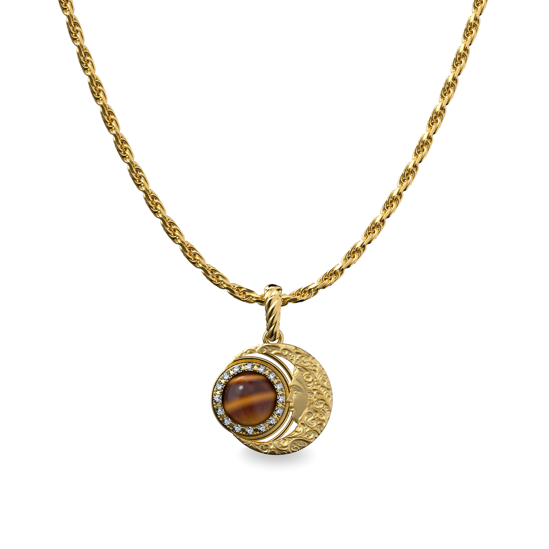 La Luna rappresenta l'intuizione, l'emozione e il sacro ritmo della trasformazione. Riflette i tuoi cicli interiori e la saggezza della forza gentile. Offerta sia in design di bracciali che di pendenti, la Luna ti permette di allinearti con le tue esigenze spirituali attraverso la scelta della pietra preziosa: la Malachite guida la crescita e la scoperta di sé; l'Occhio di Tigre equilibra emozione e chiarezza, ancorando la fiducia durante il cambiamento; l'Ossidiana protegge e purifica, mantenendo l'energia radicata e vera. Circondato da diamanti coltivati in laboratorio scintillanti, ogni pezzo brilla come la luce della luna sull'acqua calma—illuminando il tuo cammino con pace e luce interiore.