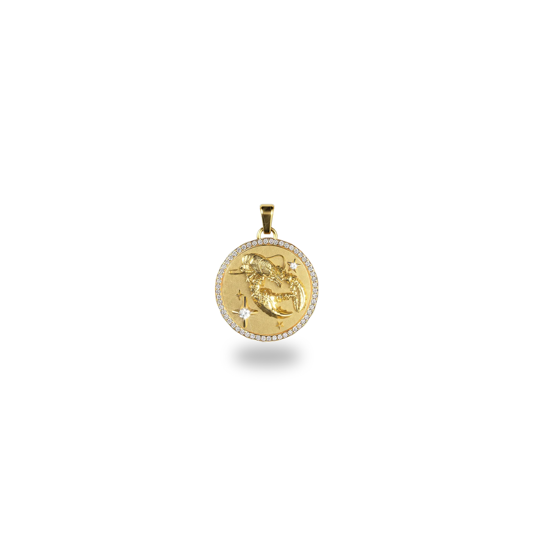 Express your mystical soul by wearing your Zodiac sign! Our craftsmen have expertly designed each amulet to represent the unique characteristics of each zodiac sign. The pave diamond rim adds a touch of luxury to the design, making it perfect for both casual wear and special occasions.