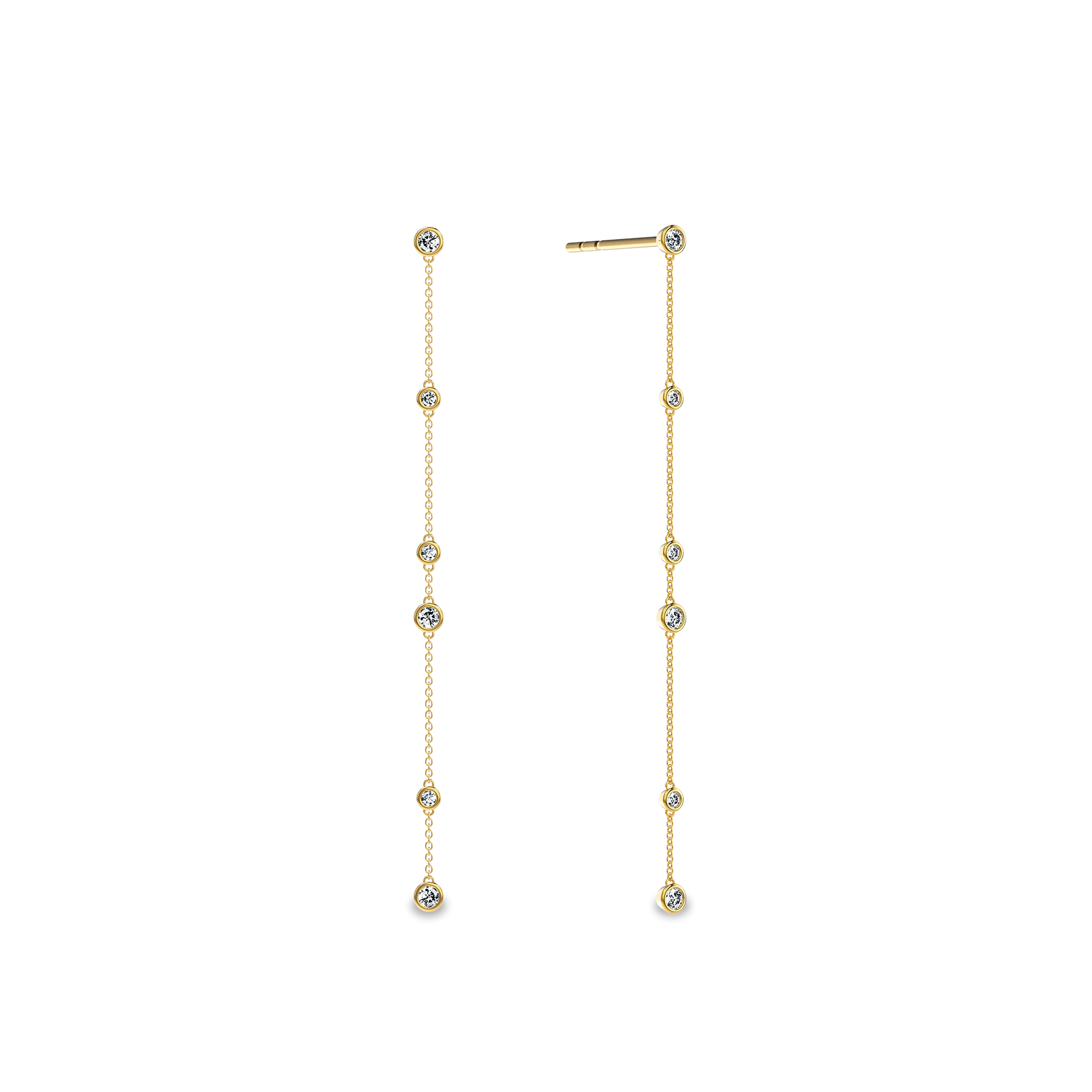 These earrings are a celebration of linear beauty and understated elegance. Each lab-grown diamond is meticulously aligned in a linear formation, creating an unbroken chain of radiant, ethereal allure. Adorning the ears with the captivating allure of their linear gem arrangement.