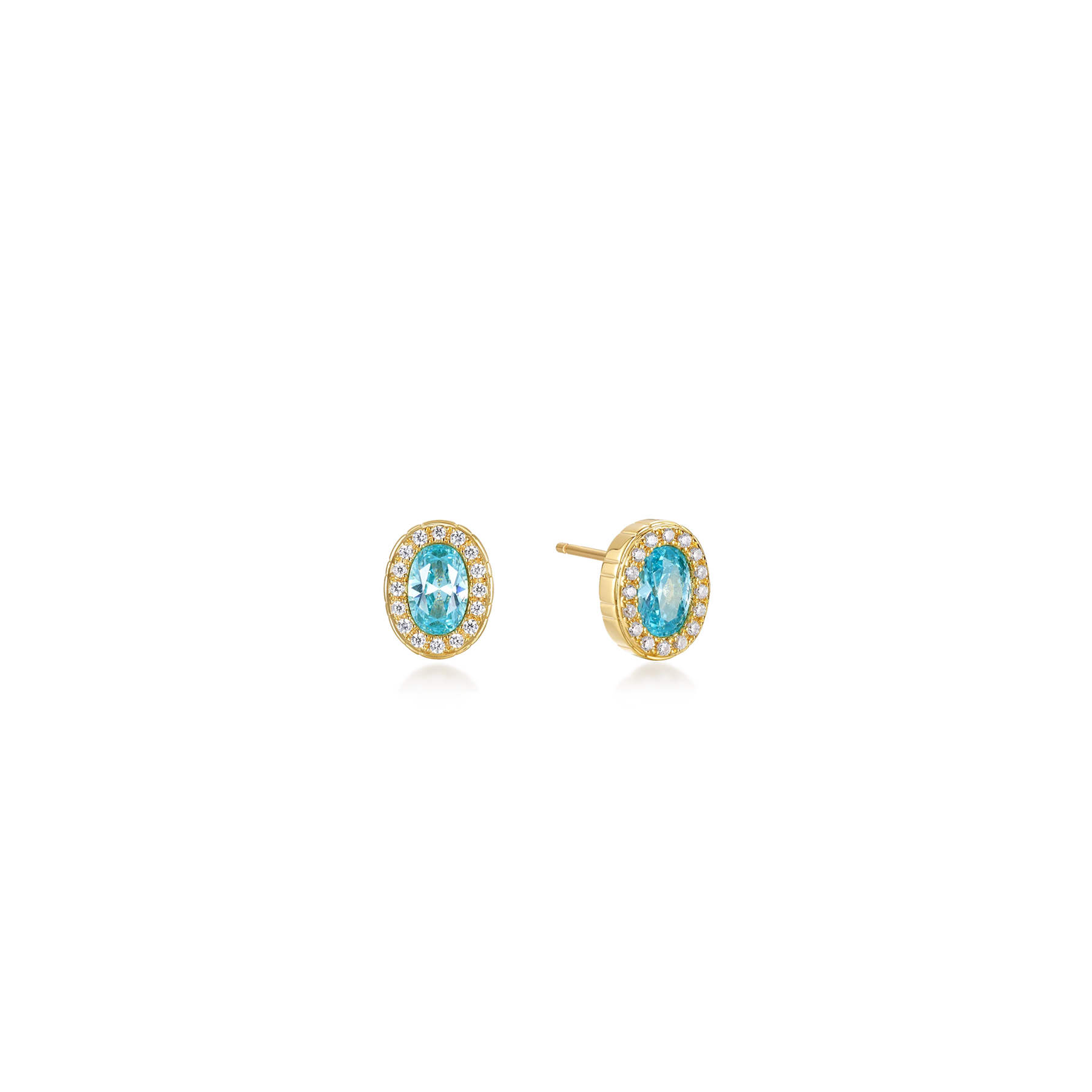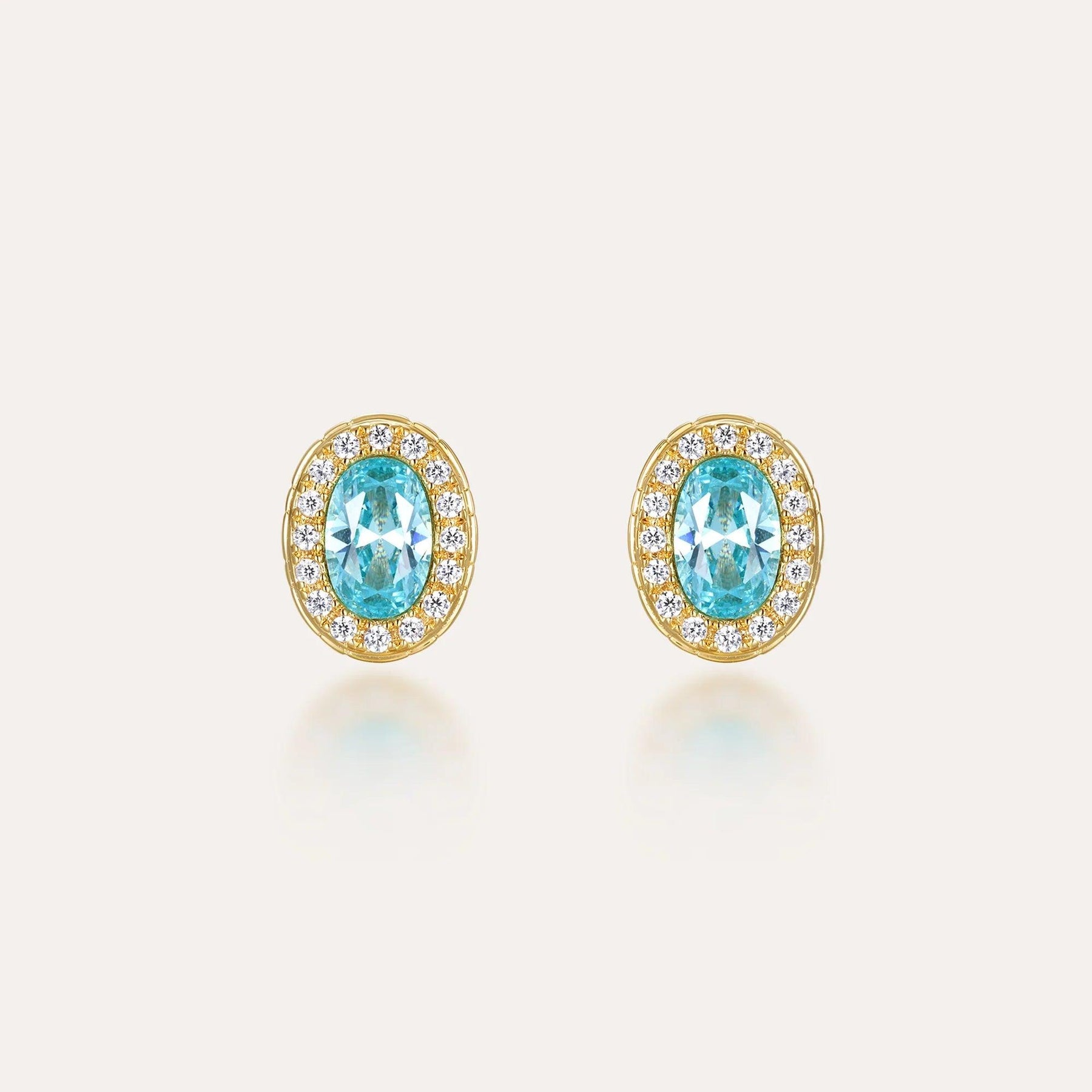 'Coastal Oasis' Gemstone Halo Diamond Stud Earrings