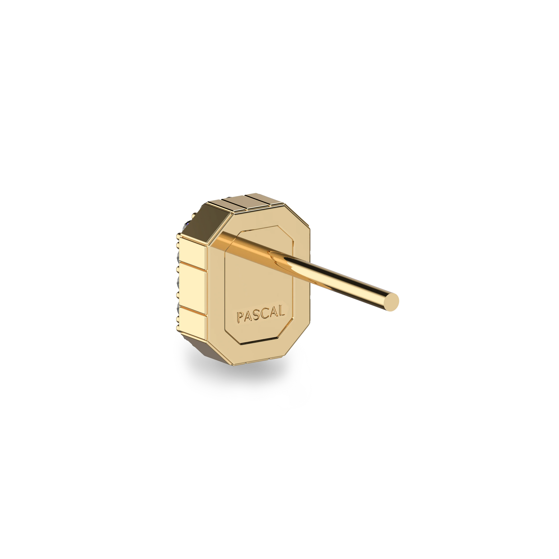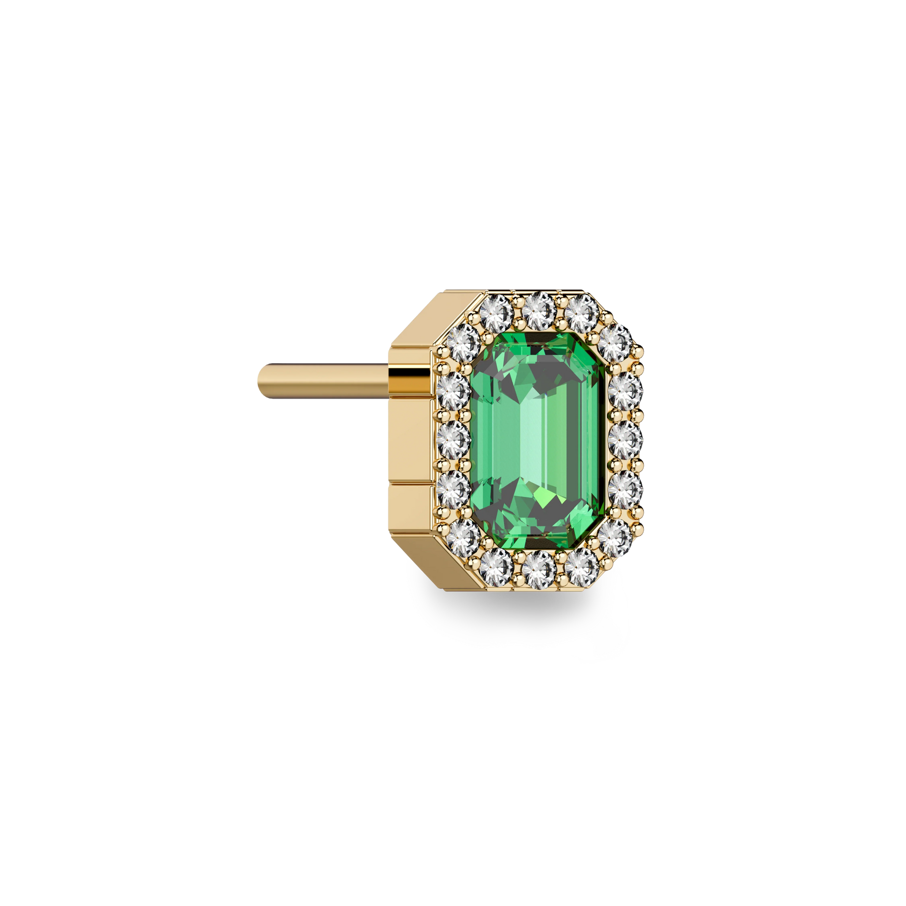 A pair of earrings featuring selected lab-grown gemstones, available in green emerald cut and light blue oval cut. It embodies simplicity and luxury with an elegant stripe texture on the sides and lab-grown diamonds surrounding the main stones. Evoking the high-end vibe of a seaside getaway, it shines like a beacon amidst the tranquil ocean breeze.