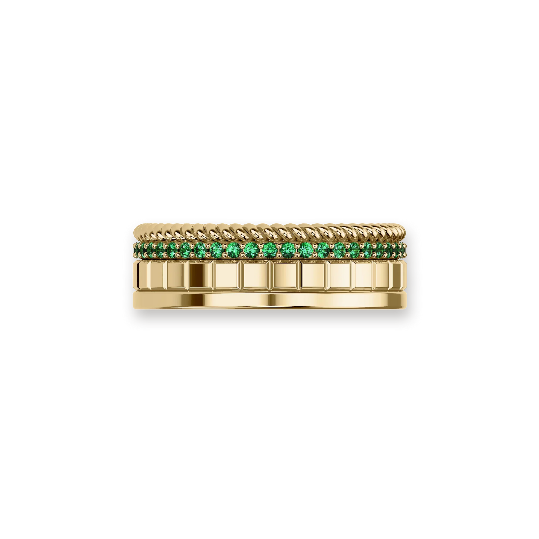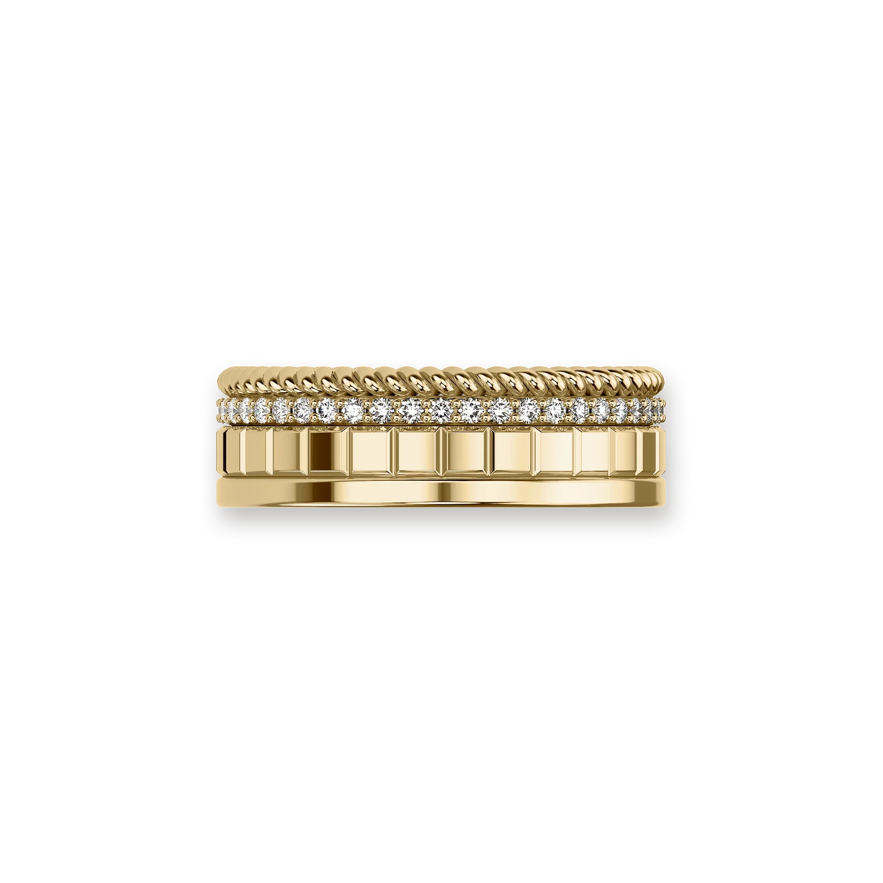 This wide-faced ring combines twisted rope / polished metal surface / shining diamonds / cubes to create a unique fashion style. It is also double-sided, with diamonds on one side and colored gemstones on the other. You can switch sides at any time and choose the color you want to show.