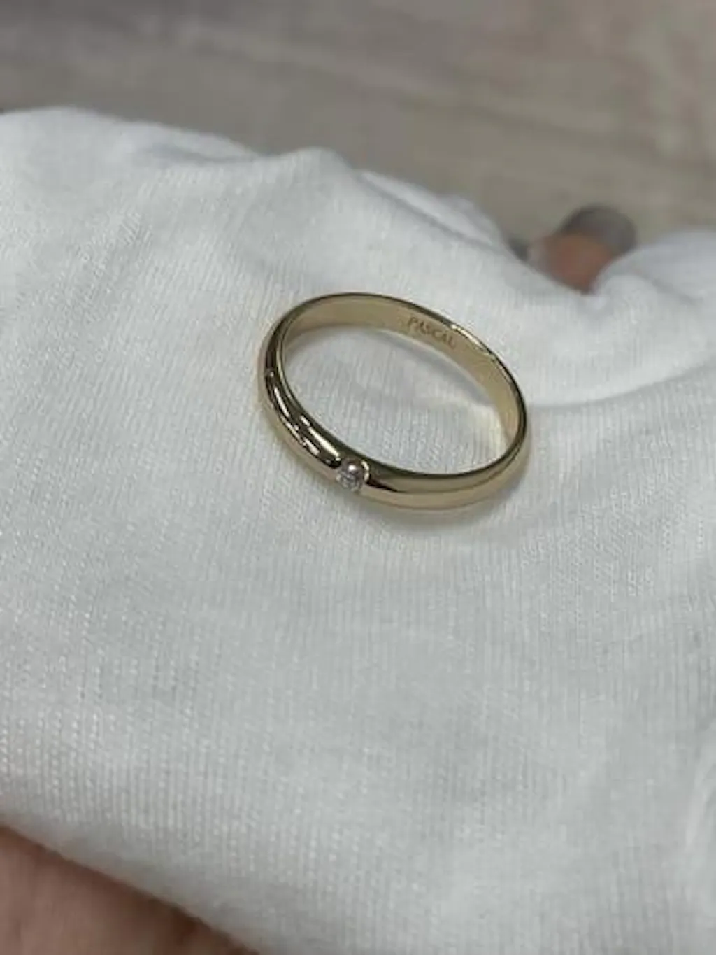 This men's wedding band is a simple design that sparkles with the tasteful brilliance of one 2 mm lab-grown diamond, symbolizing a unique lifelong commitment. This exquisite and precious ring is the perfect symbol of eternal love.