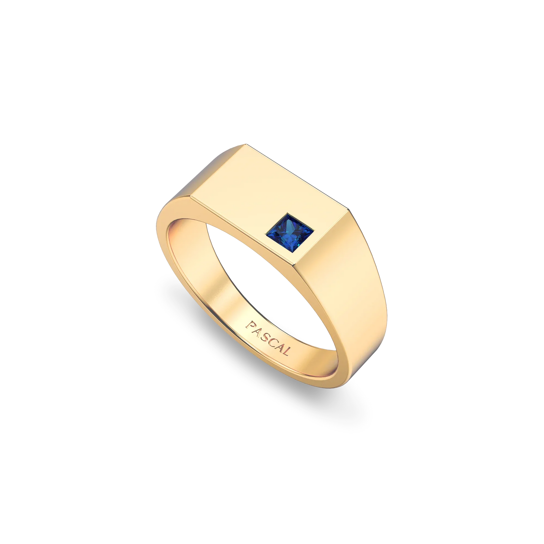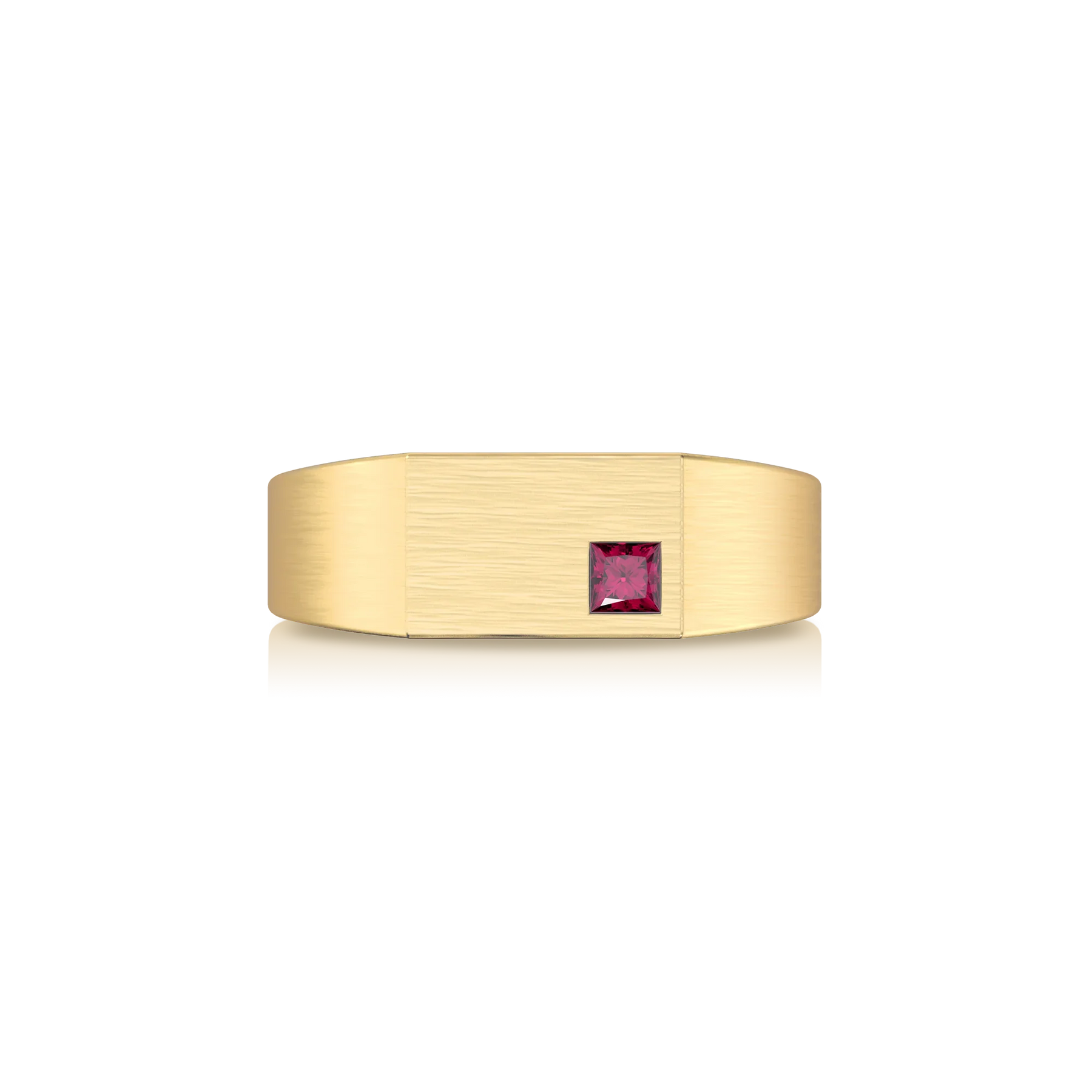 Adorned with a princess-cut lab-grown gemstone, this ring offers a choice of colors. Set within the classic rectangular Signet ring design, it's a timeless accessory suitable for any occasion.