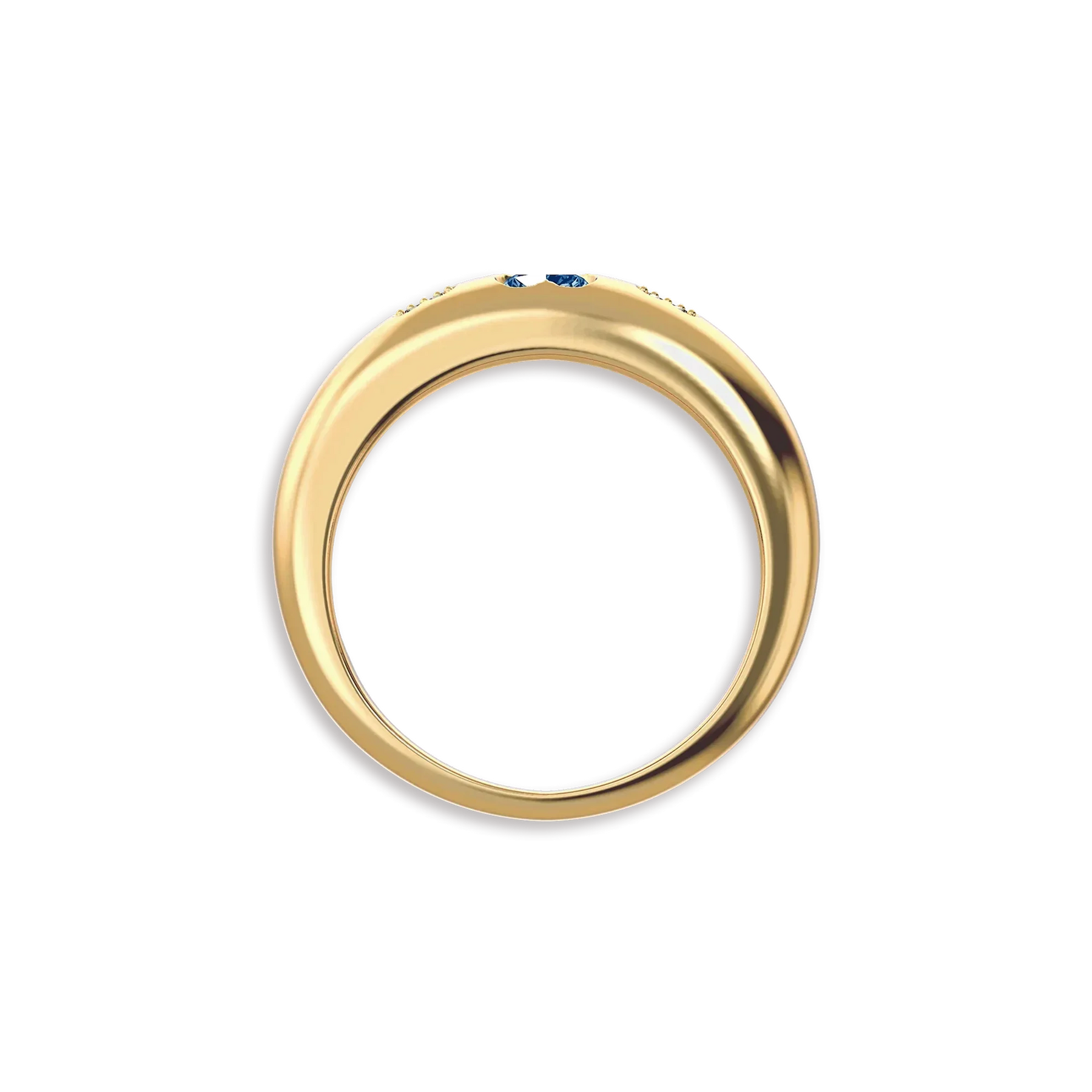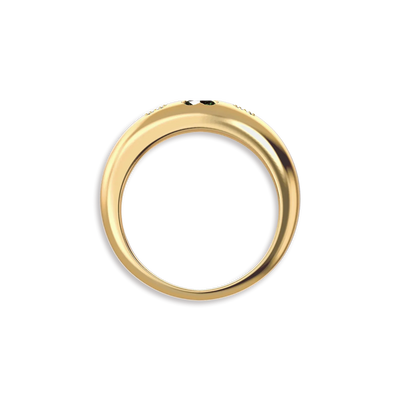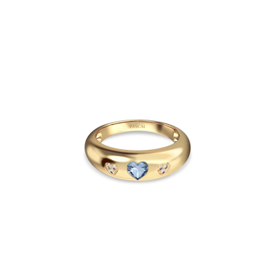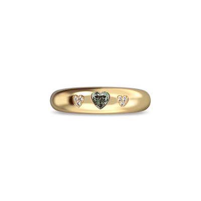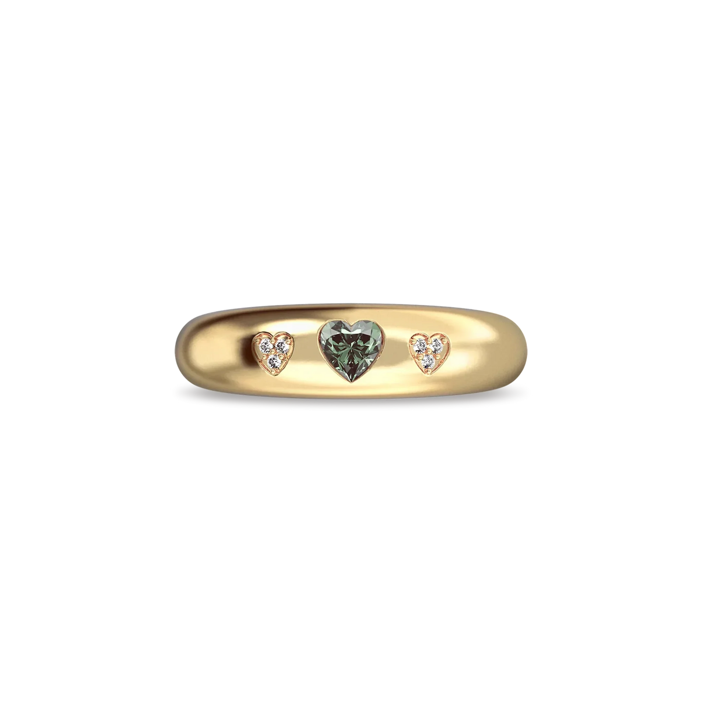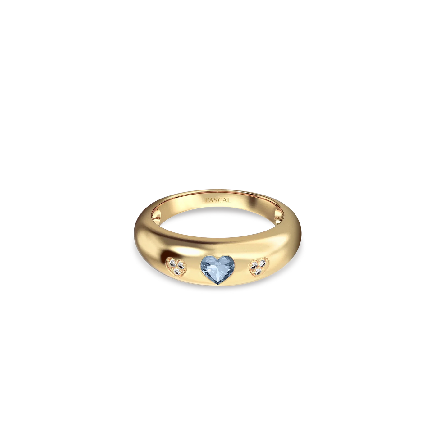 This dome ring features a heart-shaped element, with two small hearts set with charming diamonds on either side of the central heart-shaped gemstone, representing protection and symbolizing a happy relationship.The full-textured gradient ring shape and the embellishment of sparkling diamonds show the unique charm and personality of the fingers.