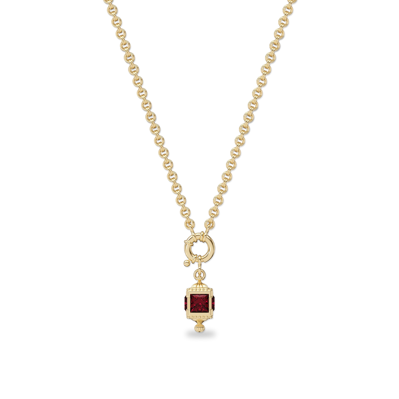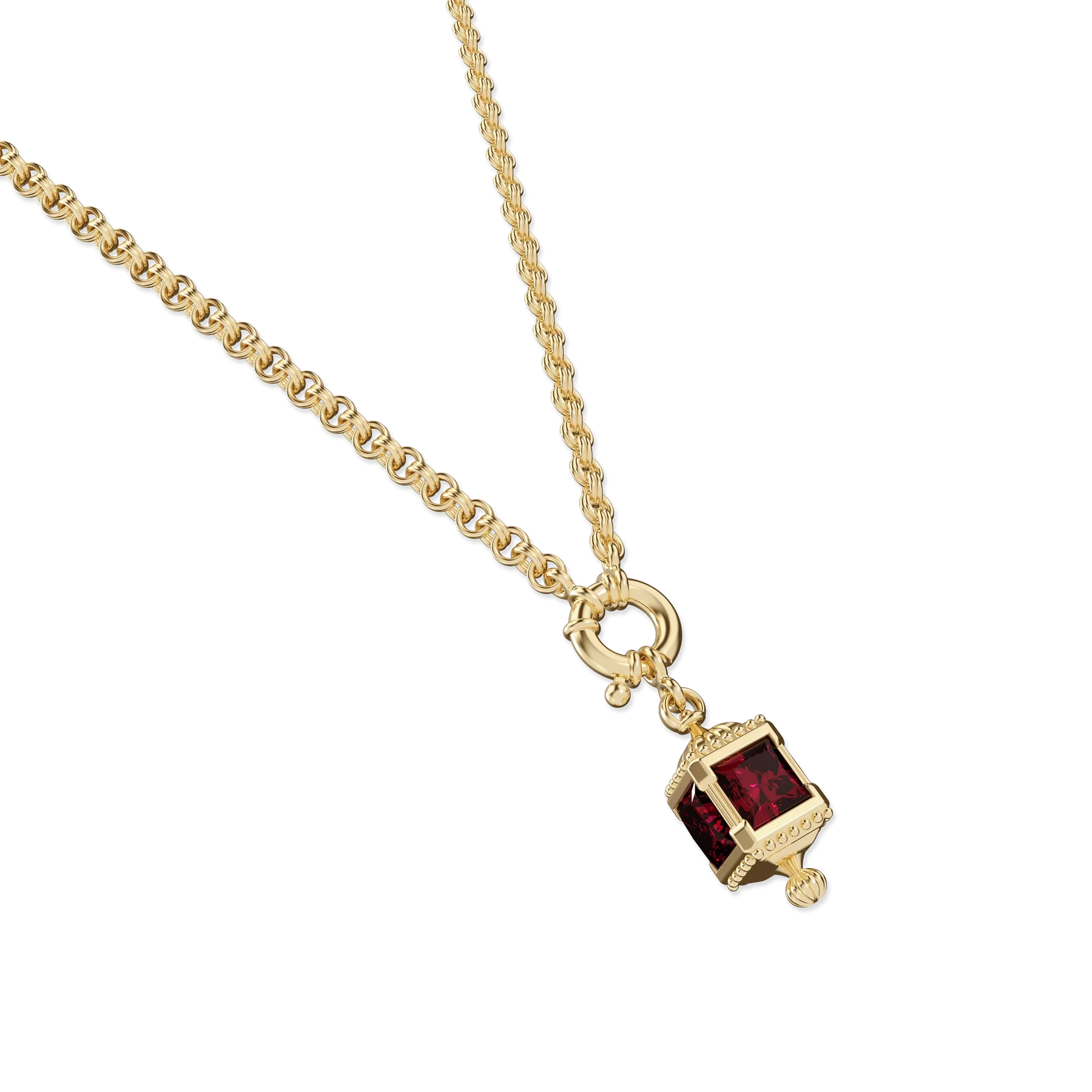 Vintage charm meets modern innovation in Revolve. This pendant necklace features a unique rotatable design with gemstones on all four sides, revealing new facets with every turn. Finished with a sculptural circular clasp, it’s available in various cuts and color combinations for a truly personalized treasure.