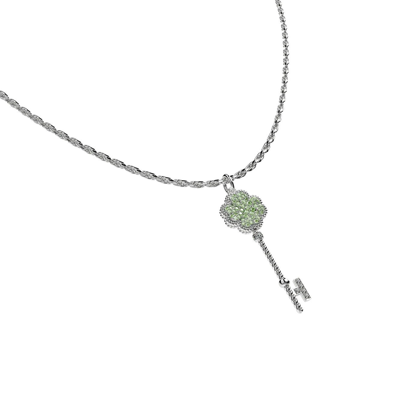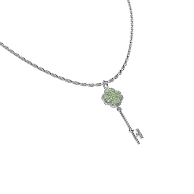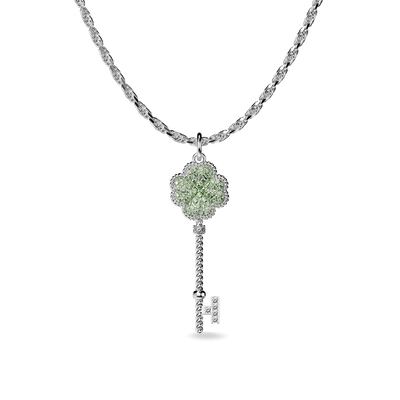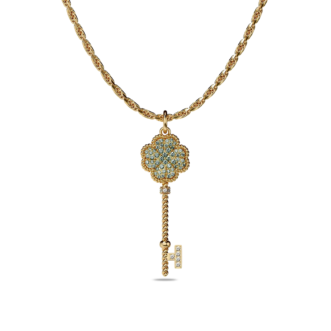 Lucky Clover Key Pendant, Green Diamond Pavé - PASCAL