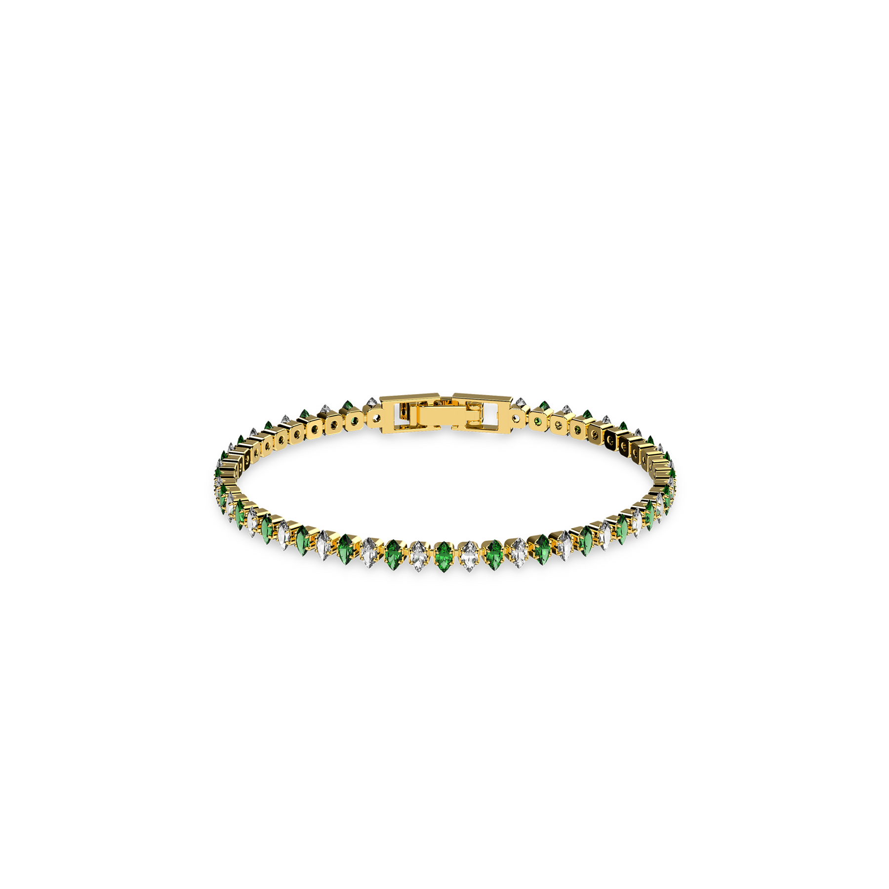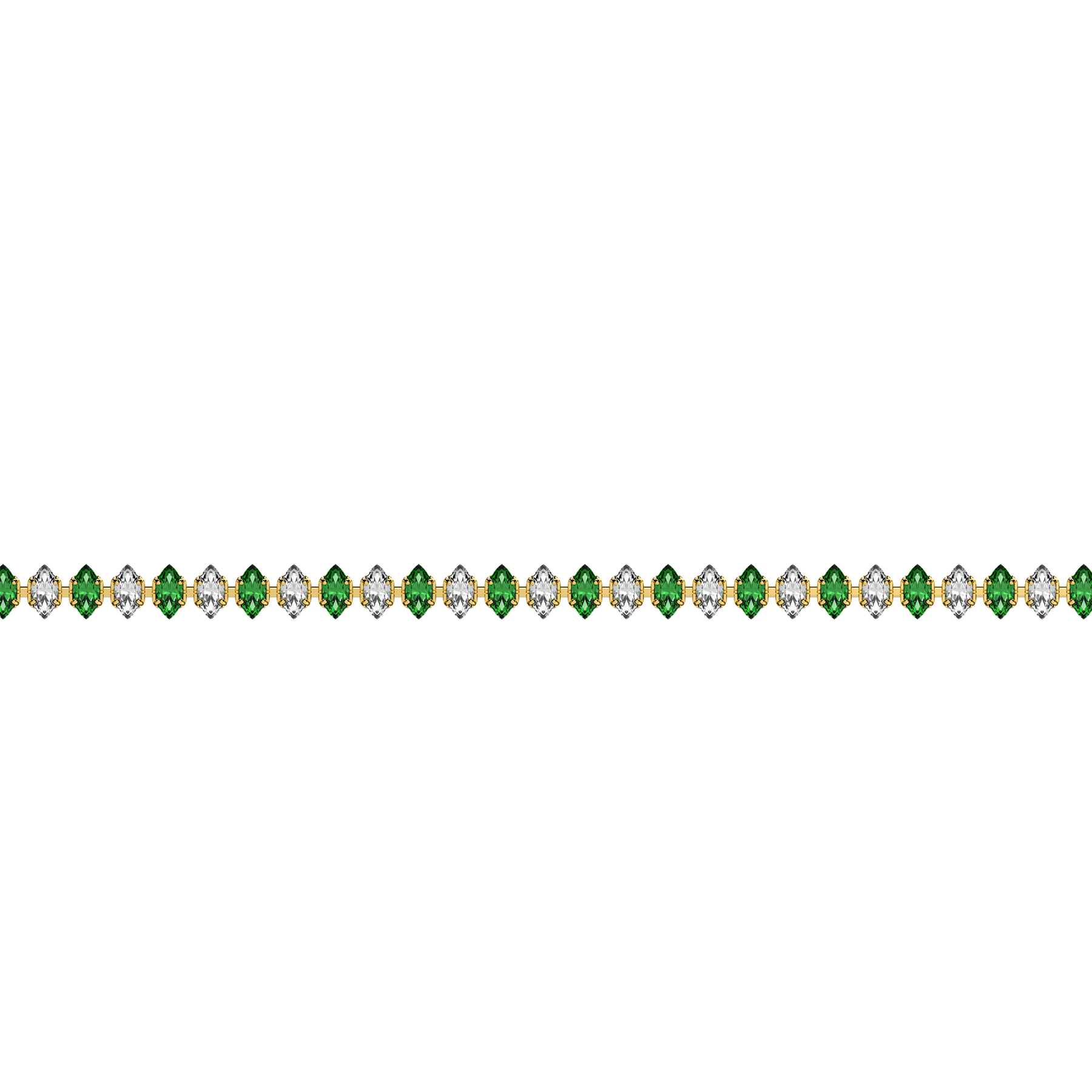 Featuring alternating marquise-cut gemstones in two colors, this bracelet creates a captivating interplay of light and hue. The precise alignment and expert setting maximize sparkle while the dual-color design adds a modern twist to a classic tennis bracelet. Elegant and versatile, it complements both casual and formal ensembles, offering a distinctive yet wearable piece for everyday sophistication.