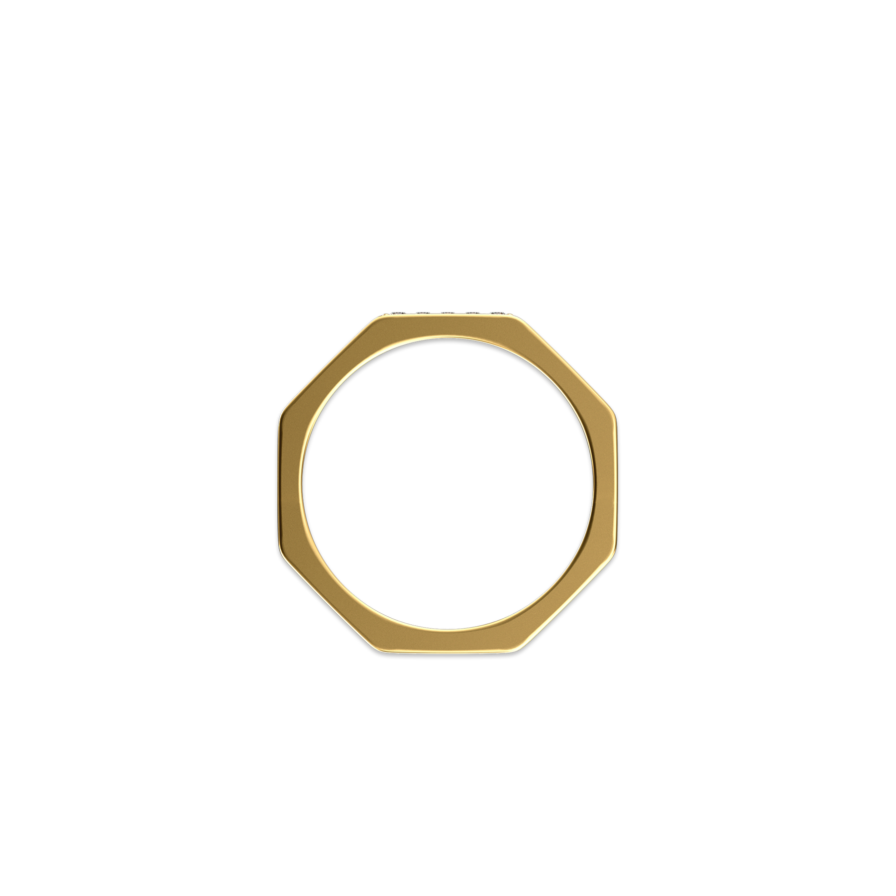 With geometric order tracing the power of minimalism, this octagonal ring reveals architectural balance through its precisely cut facets, where every edge reflects a dialogue between reason and light.