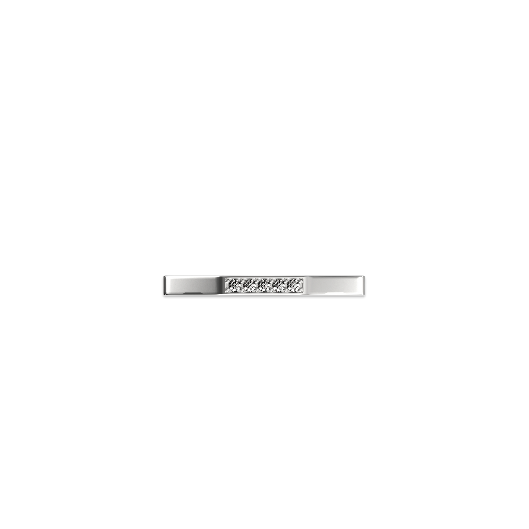 At its center, a row of fine lab-grown diamonds glimmers like a flowing ribbon of light, infusing warmth and rhythm into the pure geometry of its form. The interplay of metallic sheen and angular planes embodies the coexistence of rational beauty and luminous emotion.