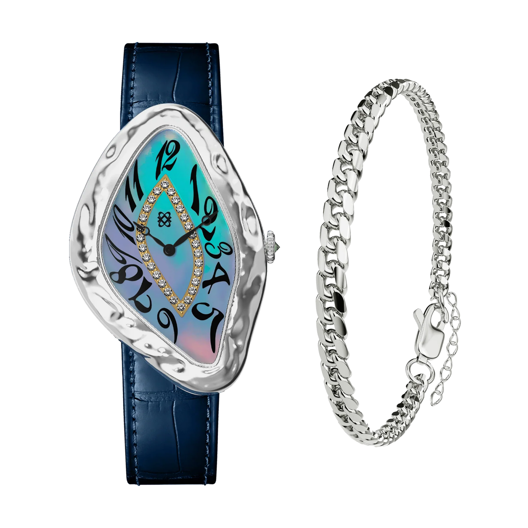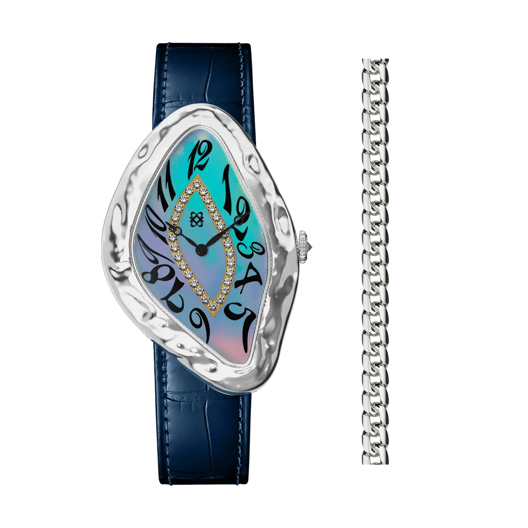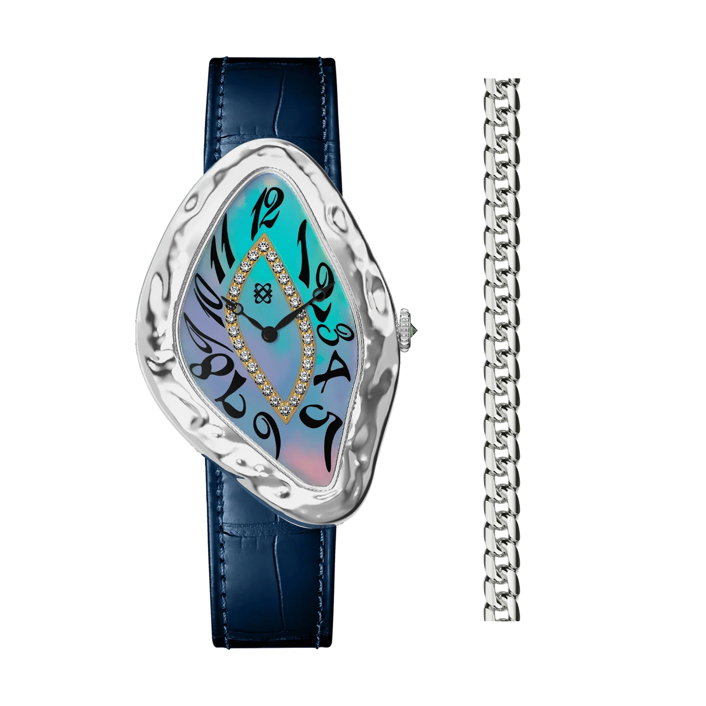 Introducing our Paradoxe Diamond Watch - a timepiece that defies convention and captures the essence of fluid time.This extraordinary watch features a case inspired by the fluid motion of liquids, reminiscent of a time rift. Just as a watch records time, it also preserves life's precious moments.